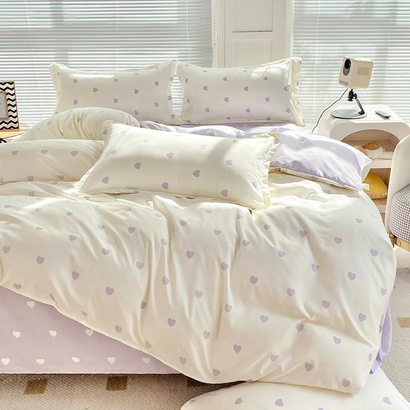 商品名称:楠沐 2025年新款亲肤水洗棉磨毛单被套 爱心灰