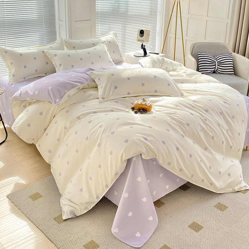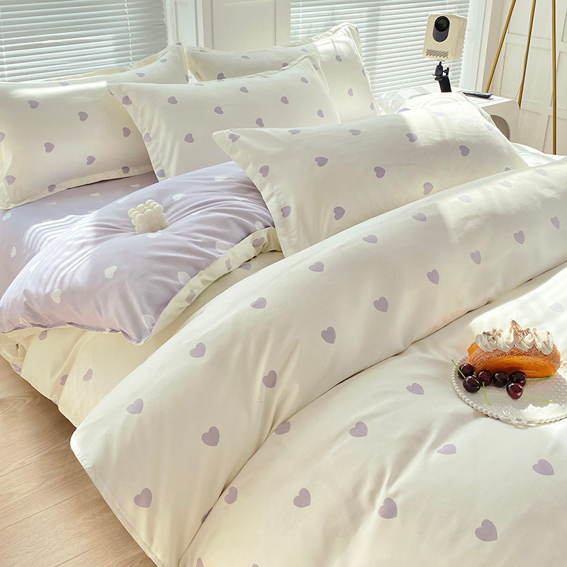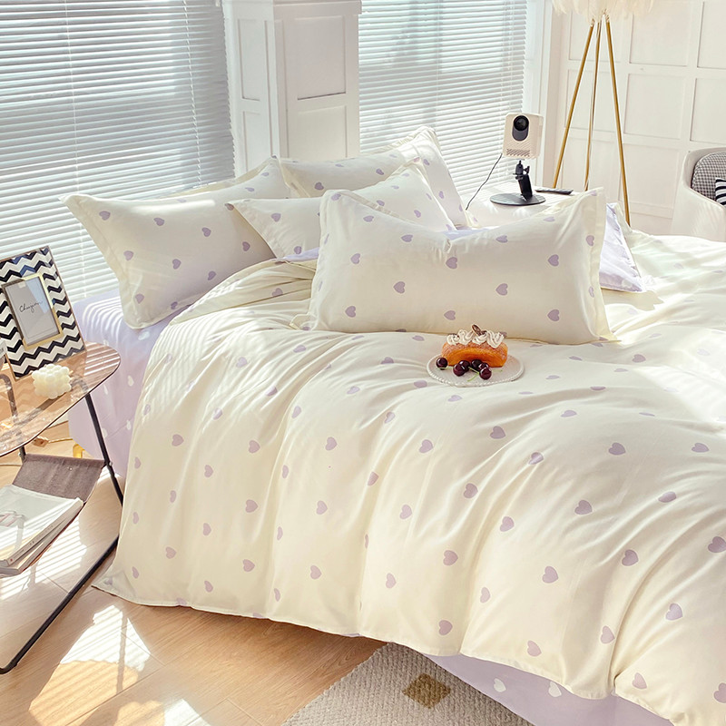 (总)楠沐家纺 2025年新款无印风学生印花四件套芦荟棉水洗棉,彩色波点,觅遇,晴空蓝格,亚麻灰格,烟雾灰格,英伦蓝格