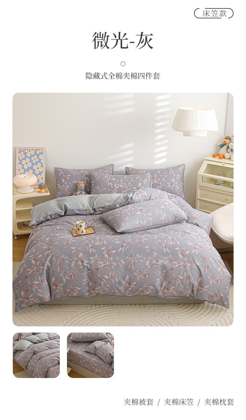 (总)元元家居(元元被业) 2025秋冬新款百支长绒棉纯棉贡缎工艺款四件套-魅影系列,魅影-布鲁灰,魅影-典雅白,魅影-香槟金,魅影-优雅粉