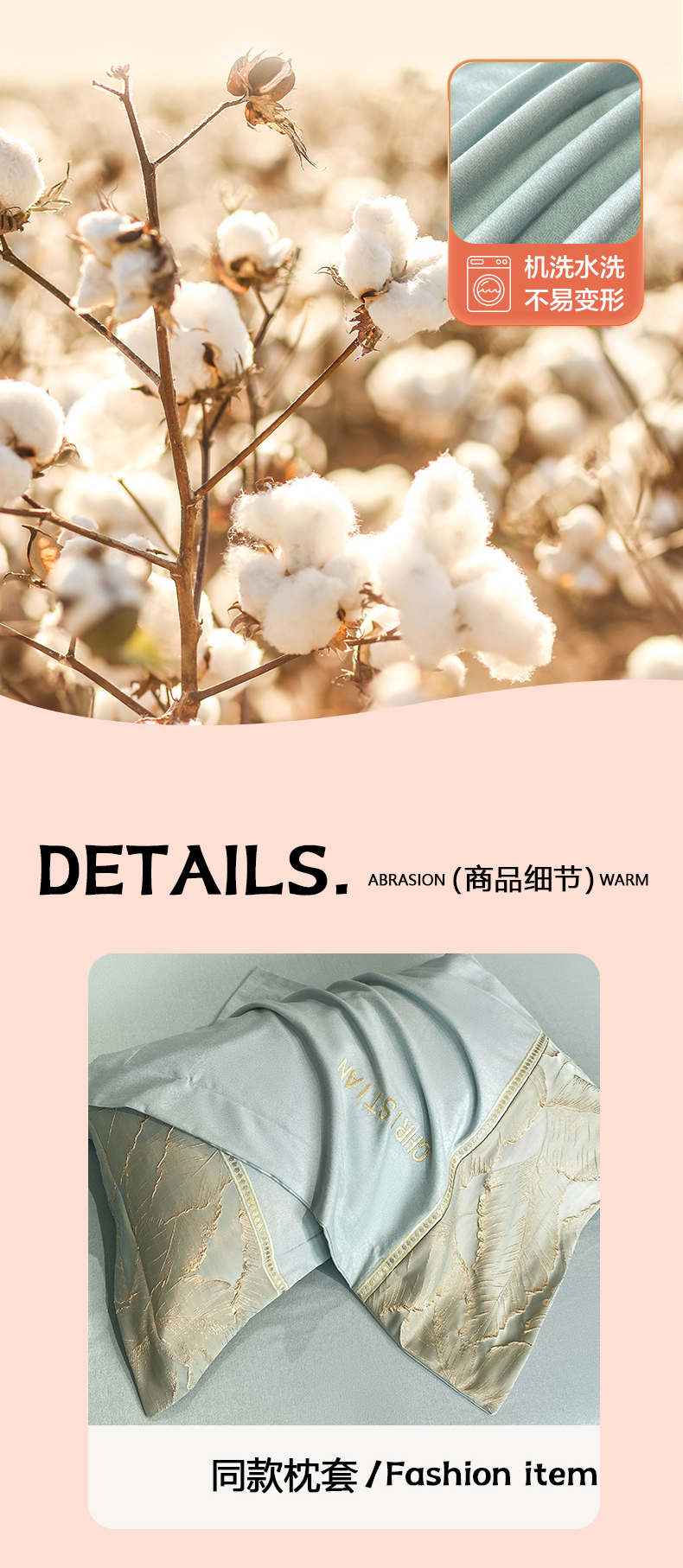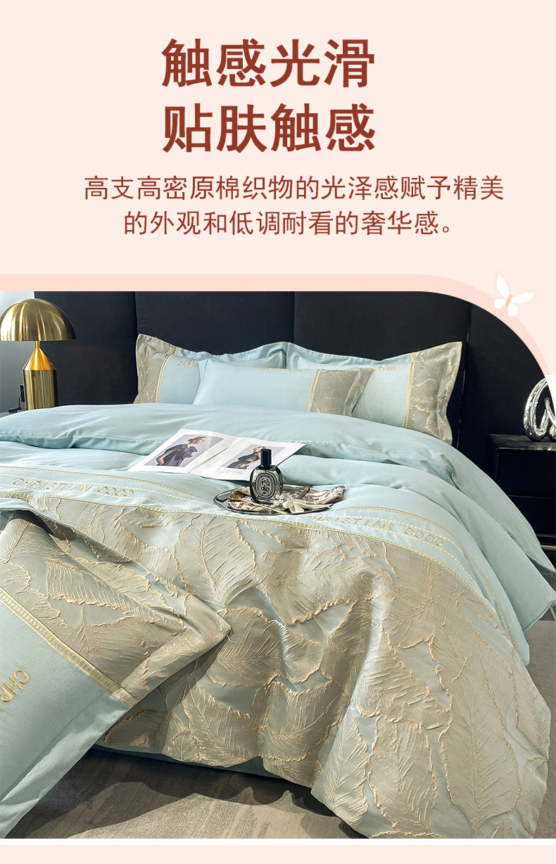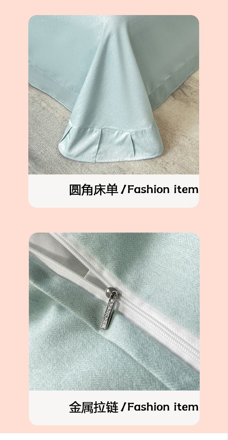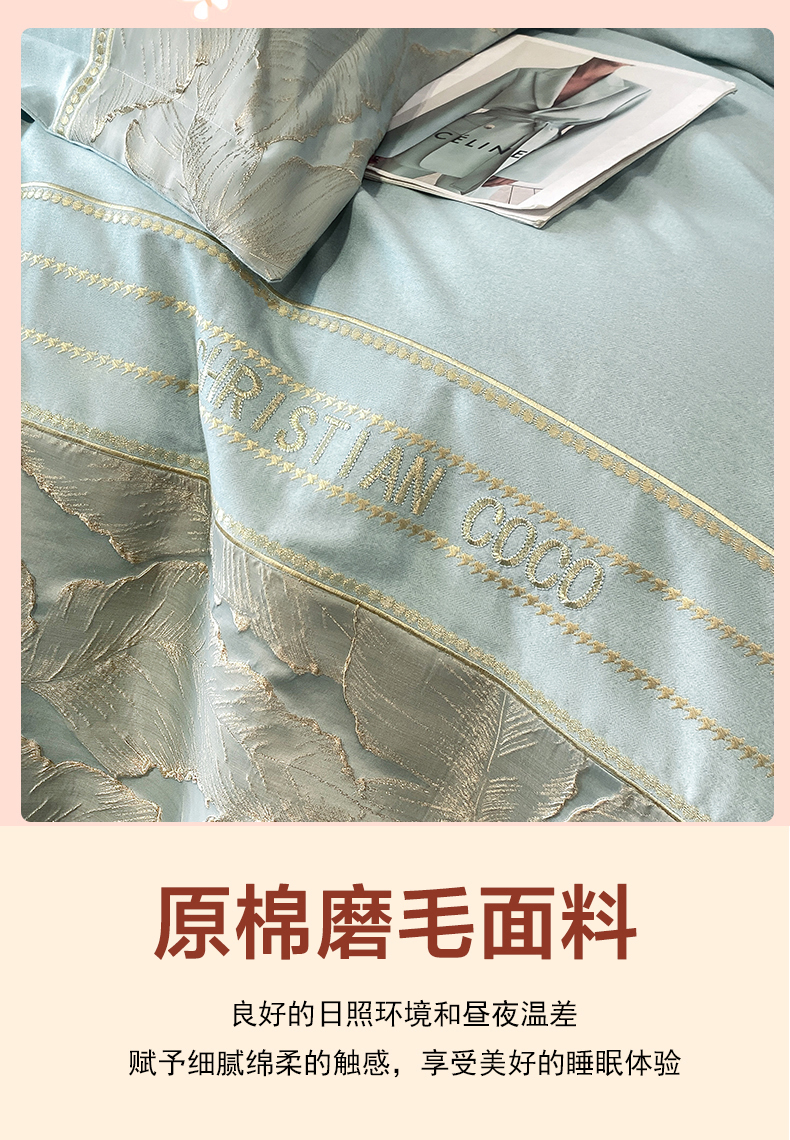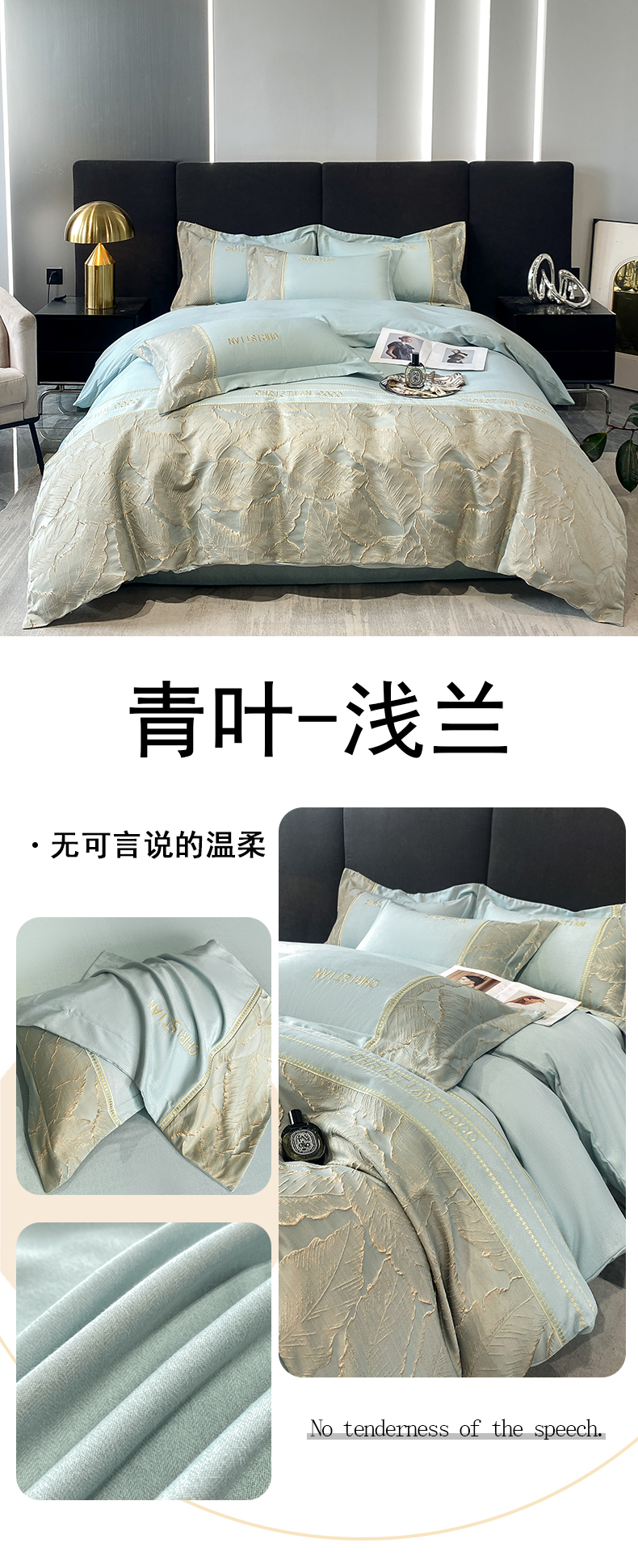 涵宸家纺 2023新款原棉磨毛四件套-青叶 青叶-浅兰