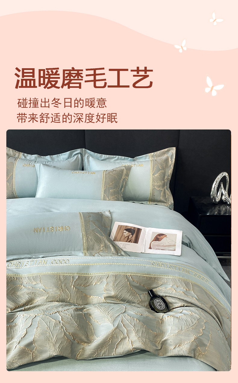 (总)涵宸家纺 2025新款雕花牛奶绒四件套,蝶舞纷飞-咖,和春-米,绿茵-粉,秋日花语,拾光-绿,怡然居- 绿,雨蝶-灰,雨蝶-卡其