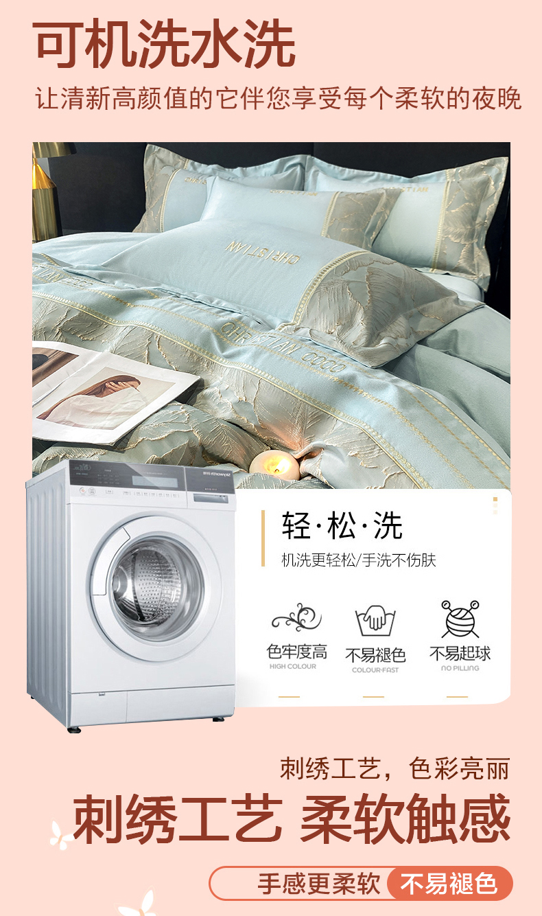 (总)涵宸家纺 2025新款全棉磨毛刺绣四件套系列-普莉,普莉-粉,普莉-绿,普莉-奶白