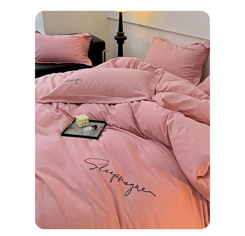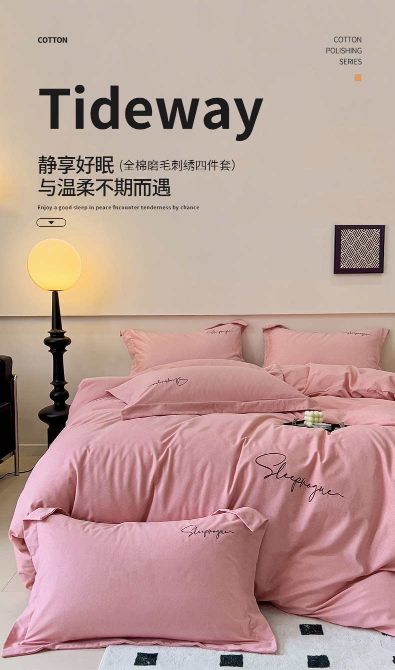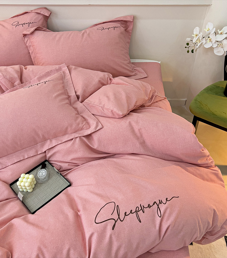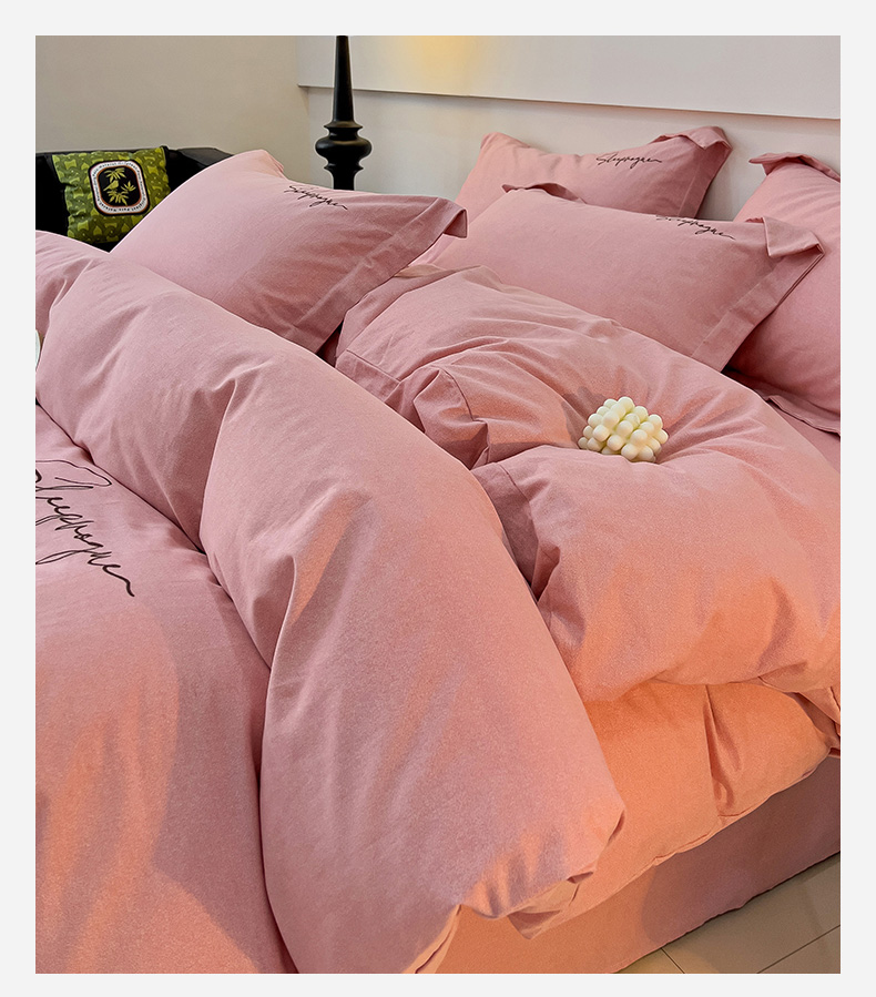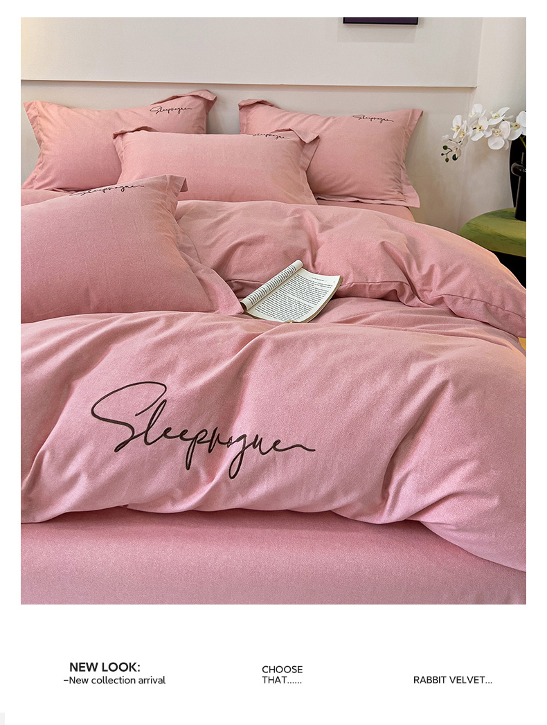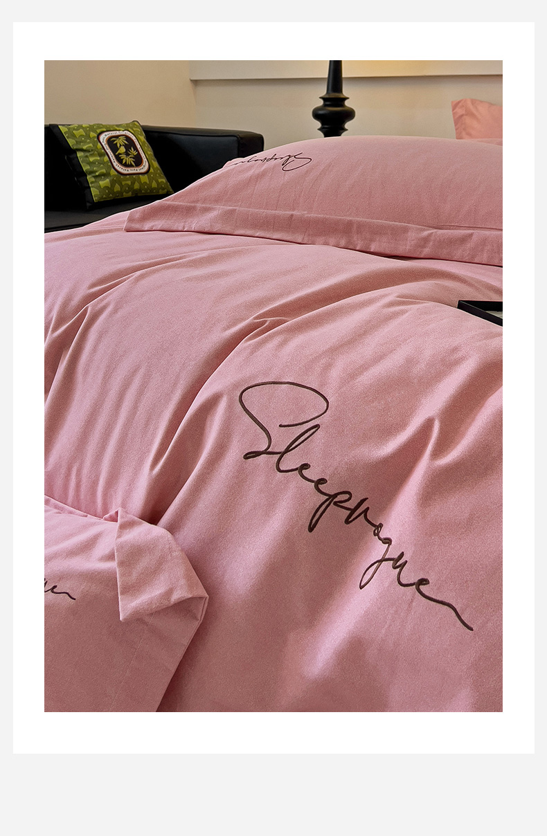 当前位置: 91家纺网 > 商品网购 > 床品套件 > 四件套 > 全棉普通四件套 > 慕尚家纺 2025新款全棉磨毛英文字母绣系列四件套 艾丽粉