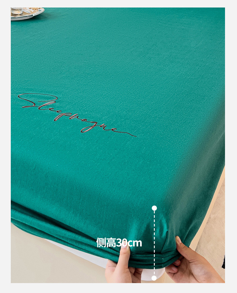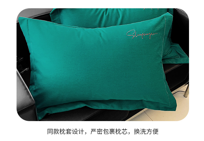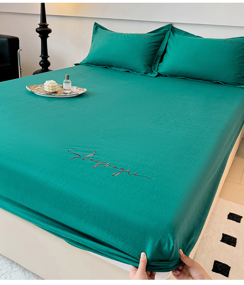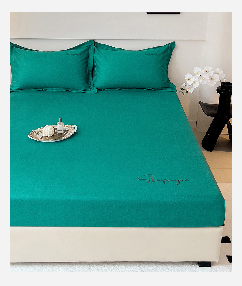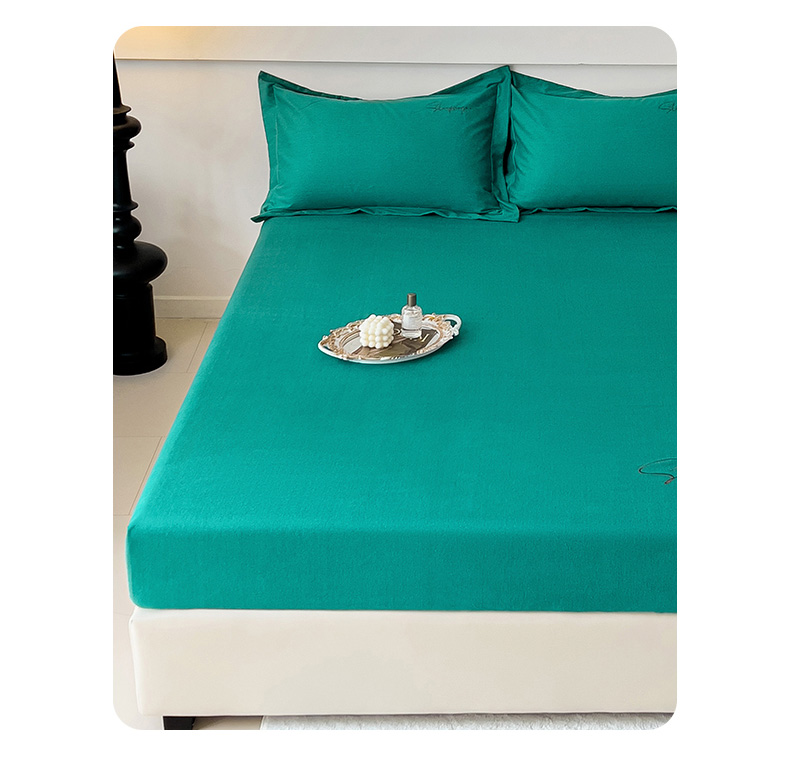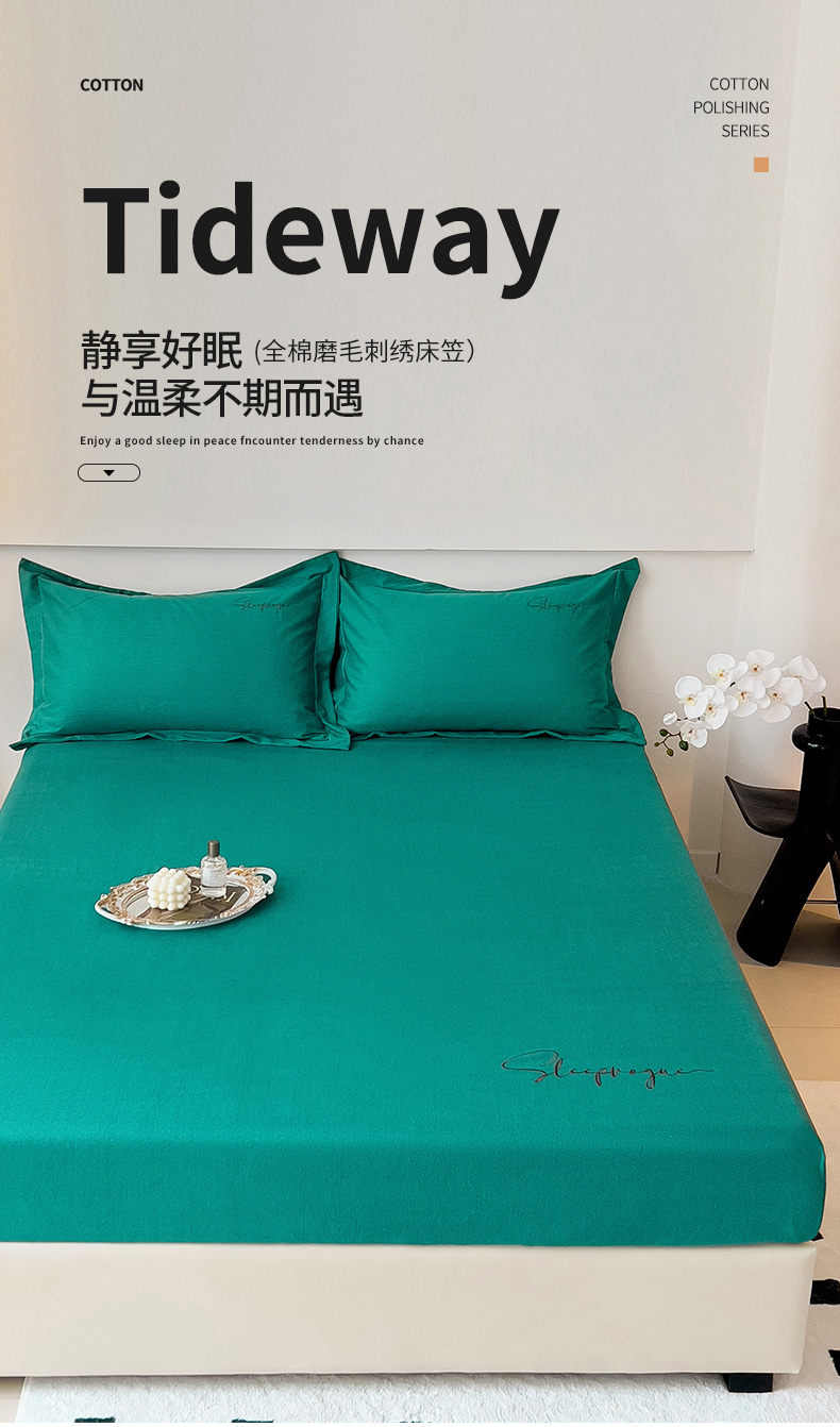 慕尚家纺 2025新款全棉磨毛英文字母绣床笠+枕套系列 艾丽墨绿