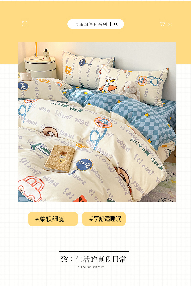 当前位置: 91家纺网 > 商品网购 > 床品套件 > 四件套 > 全棉普通四件套 > 吉象家纺 2024新款全棉印花卡通四件套系列 汽车向导