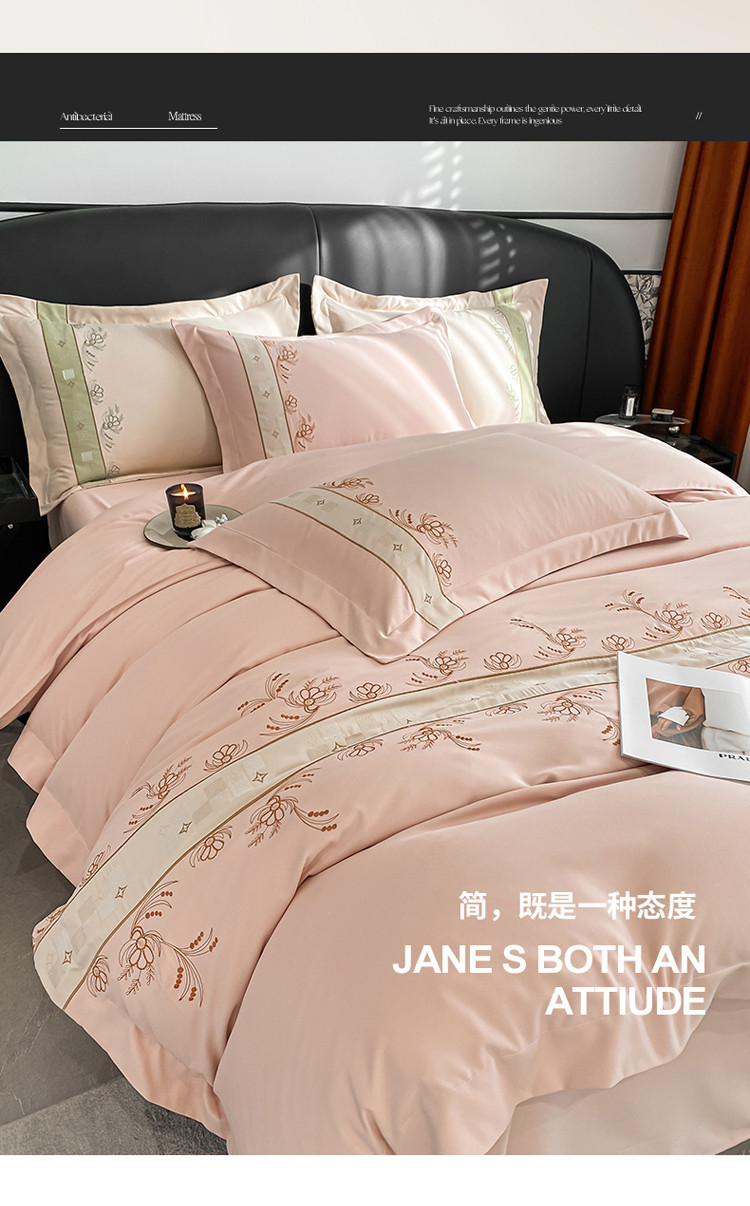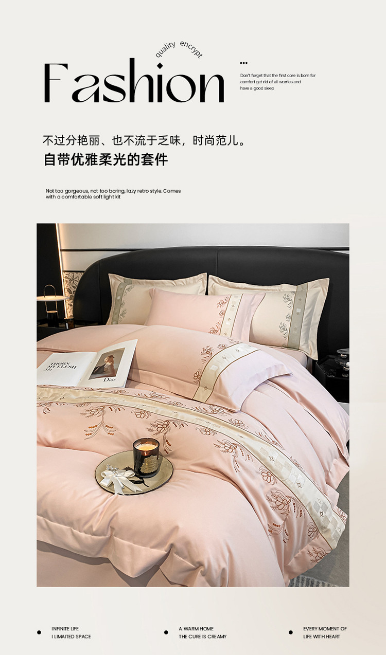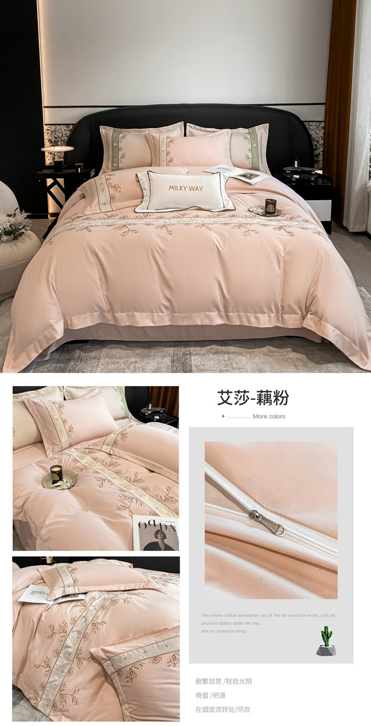 欧冠 2024四季款新品刺绣绣花款锦绣棉爱莎四件套艾莎-藕粉