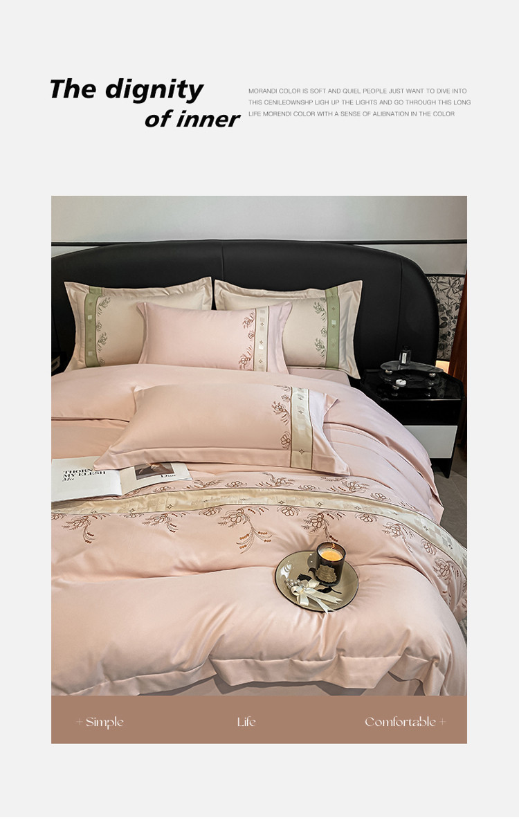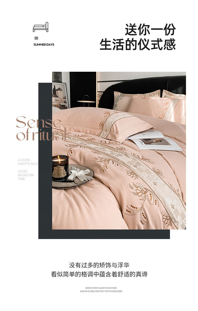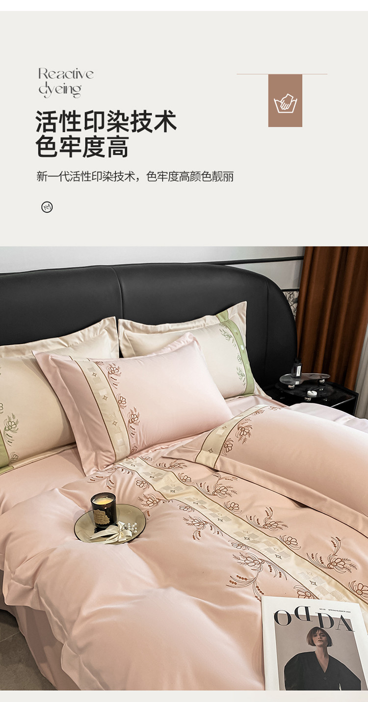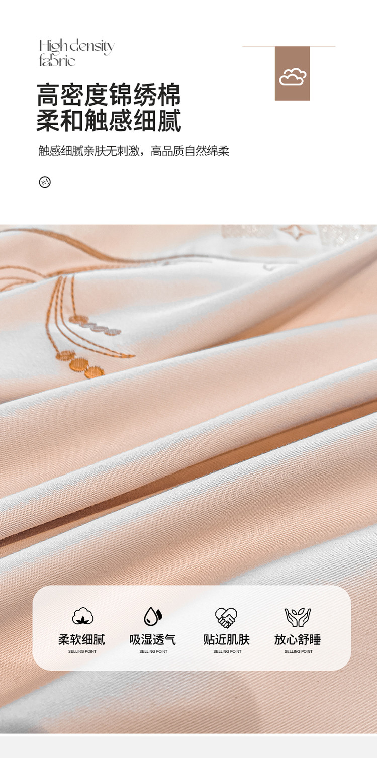 欧冠 2024四季款新品刺绣绣花款锦绣棉爱莎四件套艾莎-藕粉