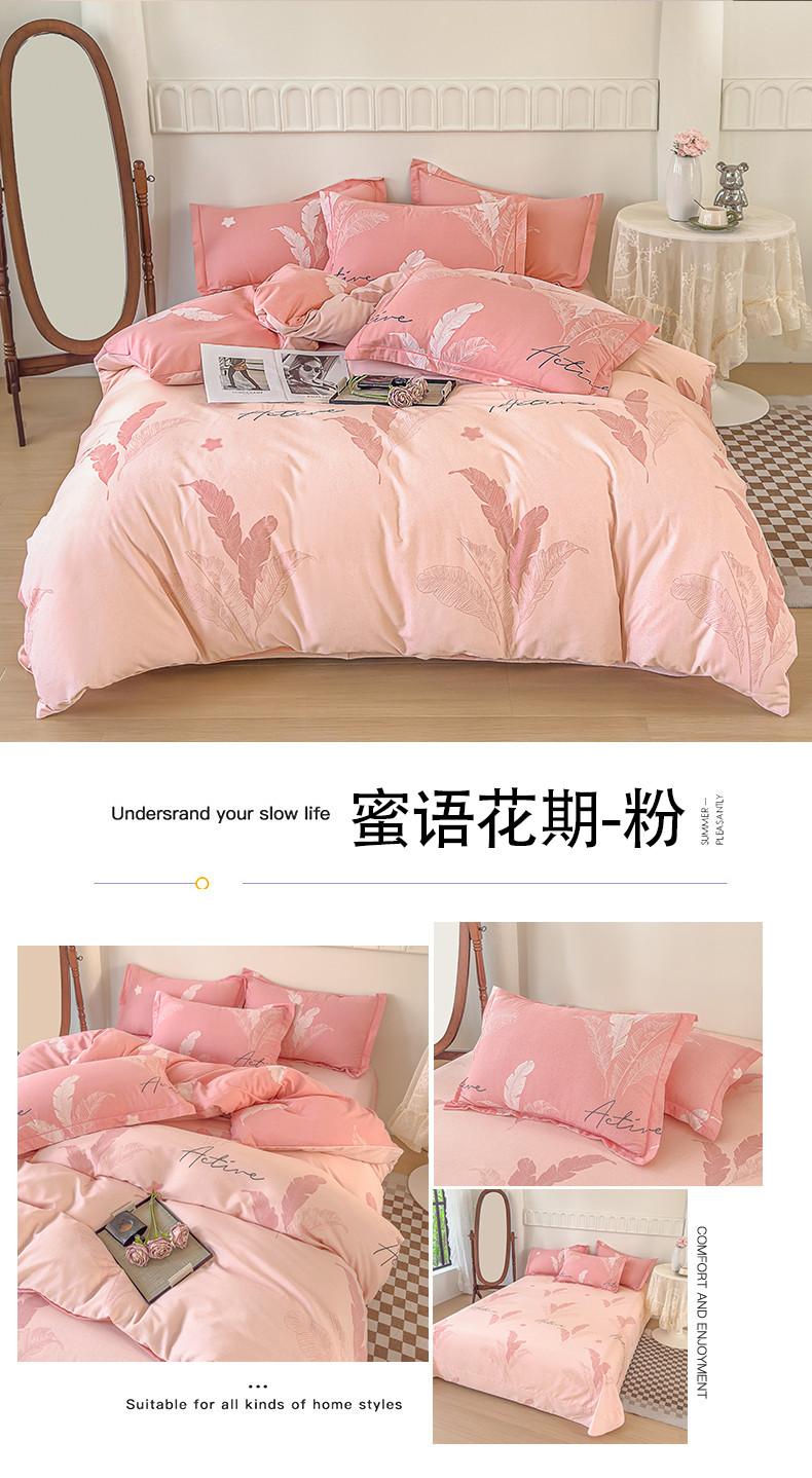 喜四方 2024新款全棉磨毛纯棉印花四件套 蜜语花期-粉