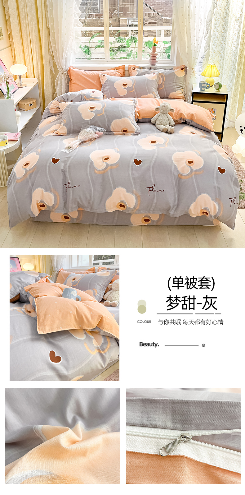 商品名称:铭成家纺 2024新款新疆棉喷气印花小清新系列单被套 梦甜-灰