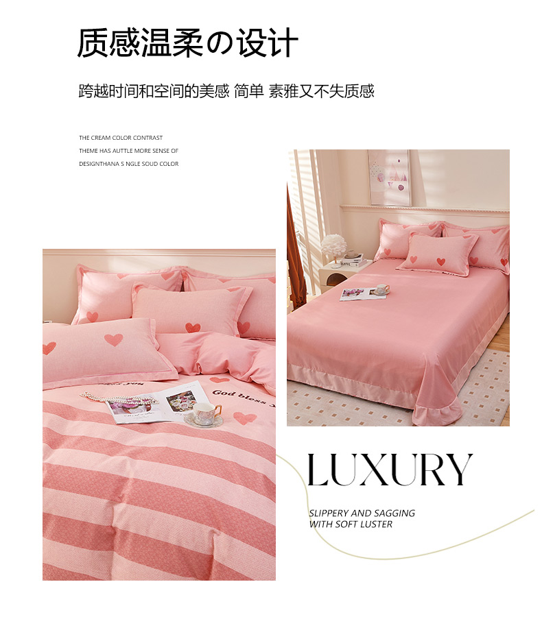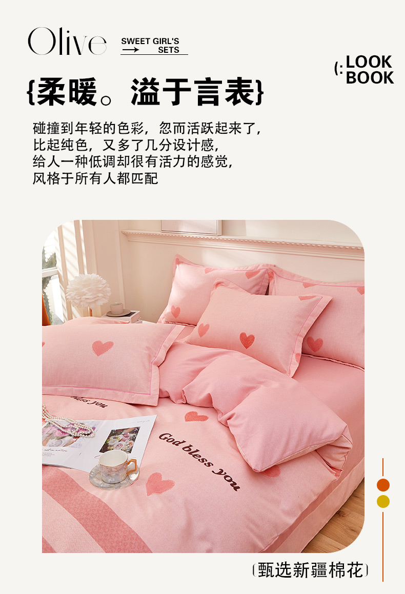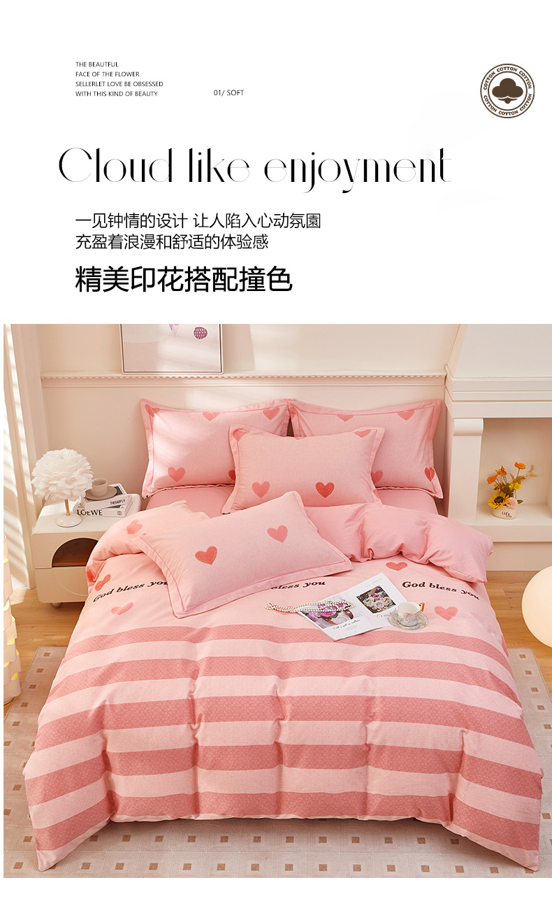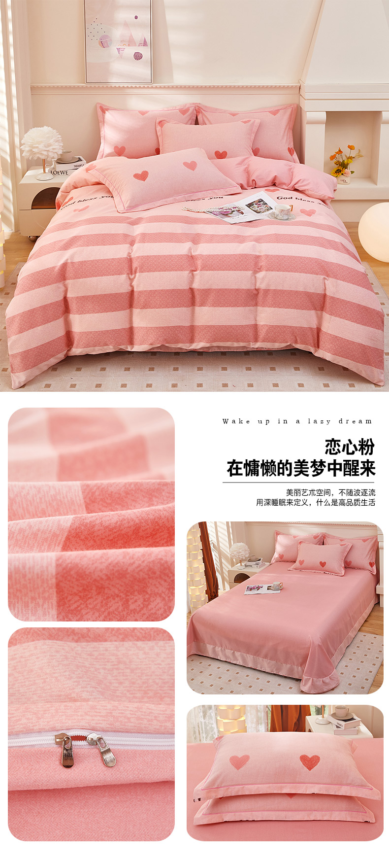 商品名称:雲归梦 2023新款全棉AB版加厚四件套 恋心 粉