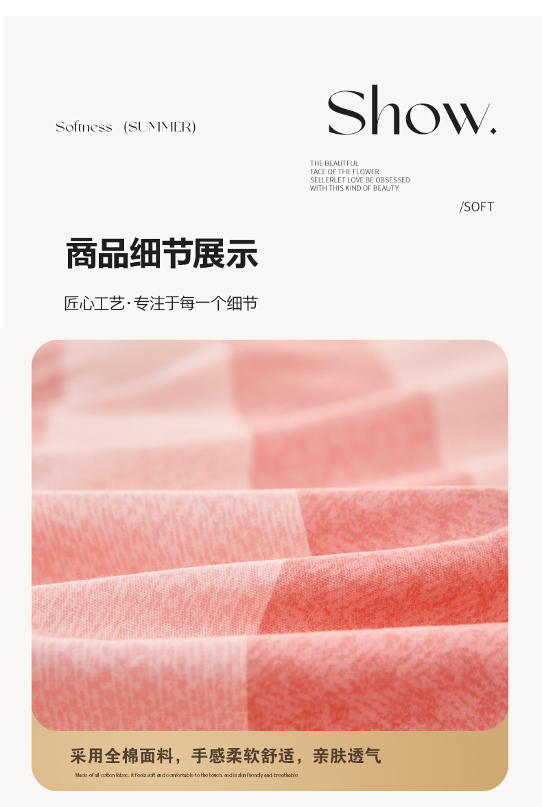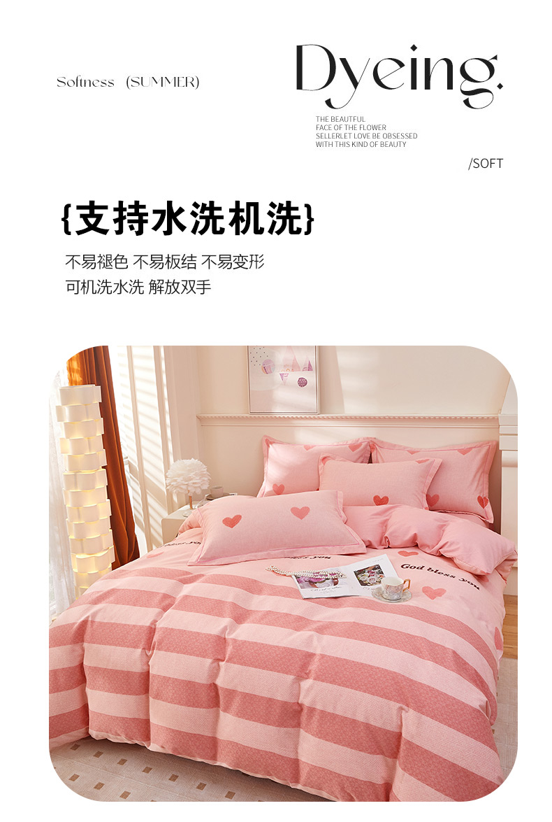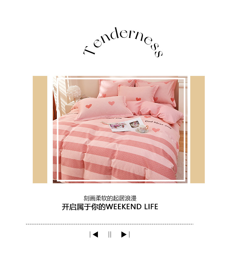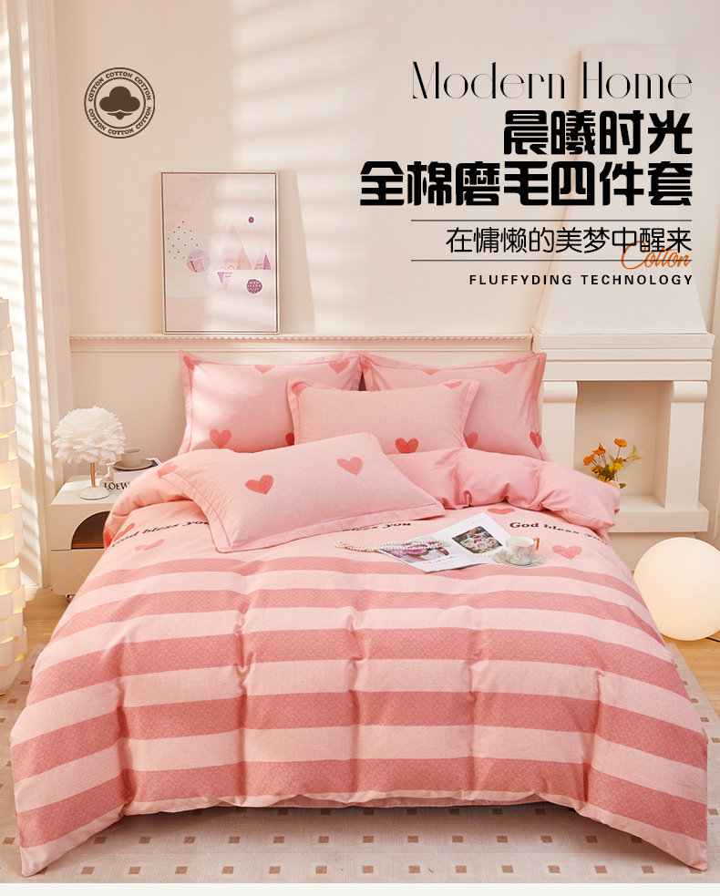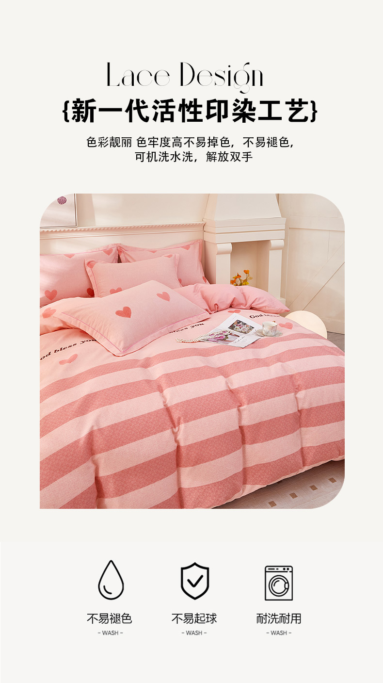商品名称:雲归梦 2023新款全棉AB版加厚四件套 恋心 粉