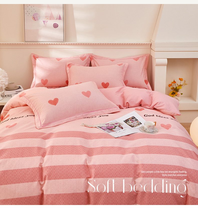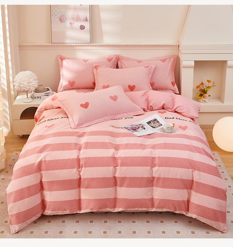 雲归梦 2023新款全棉AB版加厚四件套 恋心 粉