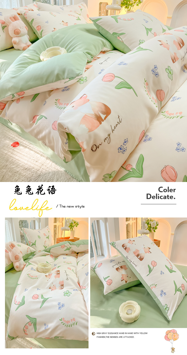当前位置: 91家纺网 > 商品网购 > 床品套件 > 四件套 > 水洗棉四件套 > yyds网供 2024新款水洗棉印花卡通四件套花卉小清新单件被套 兔兔花语