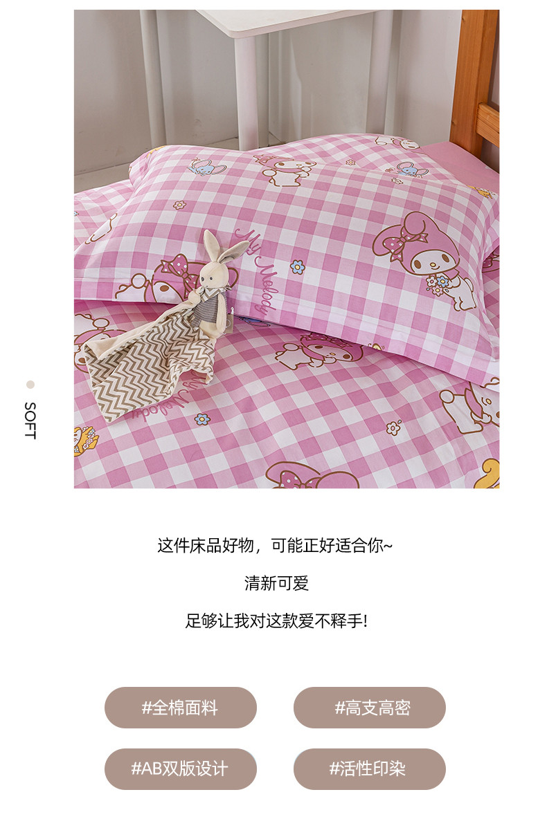 当前位置: 91家纺网 > 商品网购 > 床品套件 > 四件套 > 全棉普通四件套 > 锦润 2025新款三丽鸥系列印花学生三件套纯棉全棉三件套粉格美乐蒂