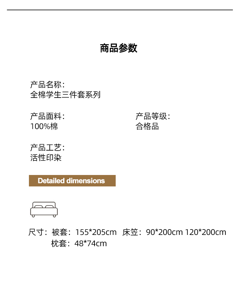 套餐8六件套:【三件套+5斤棉花被+4斤棉花褥垫(90*200)+枕芯】 | ¥189.00 |