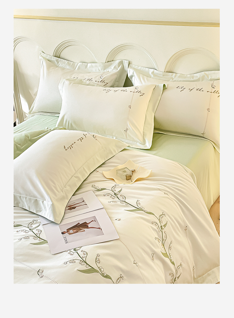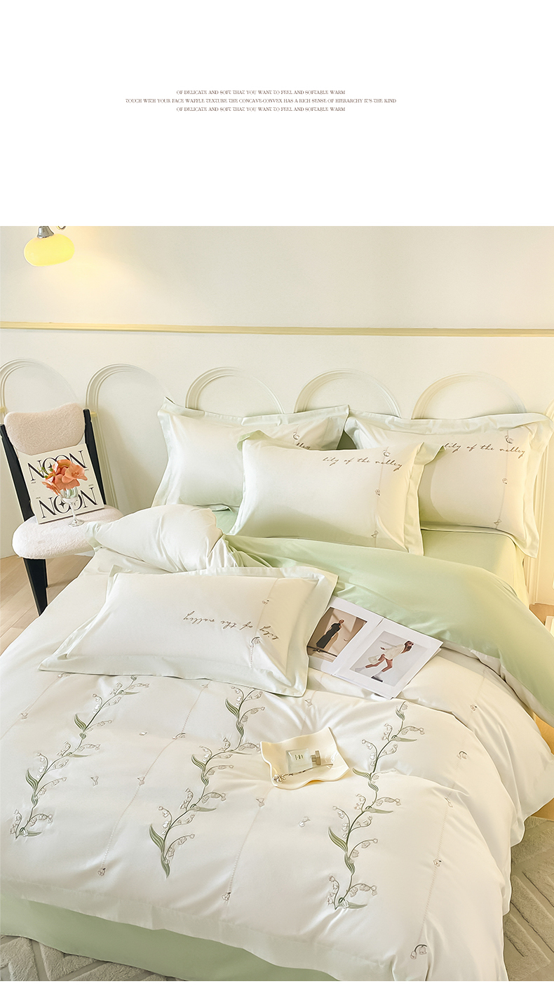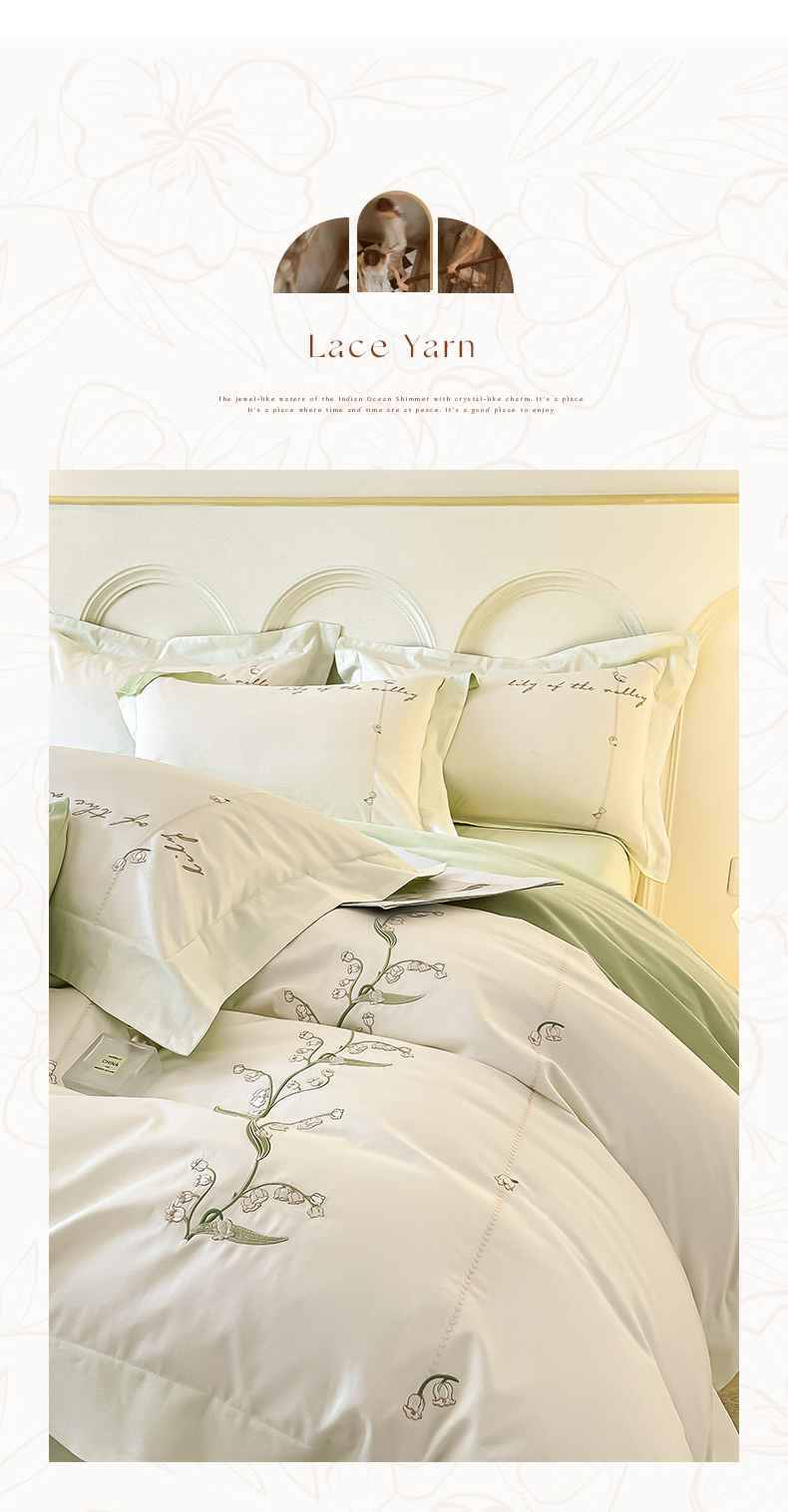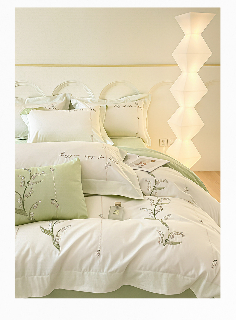 蓝米卡夫 2024新品-全棉铃兰花语刺绣宽边系列 铃兰花语-奶昔抹茶