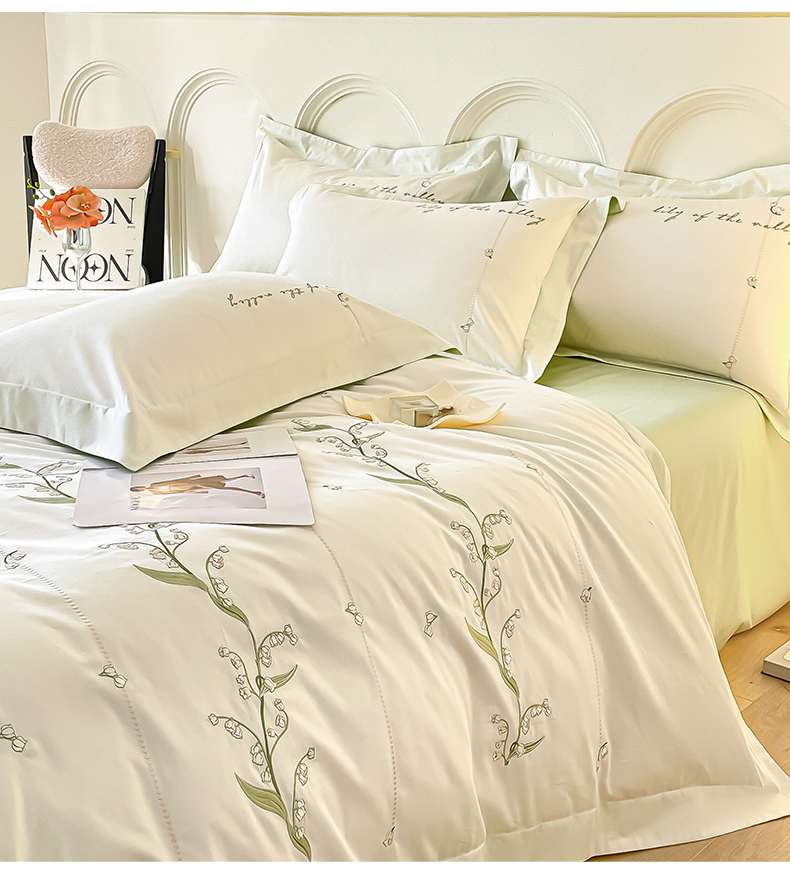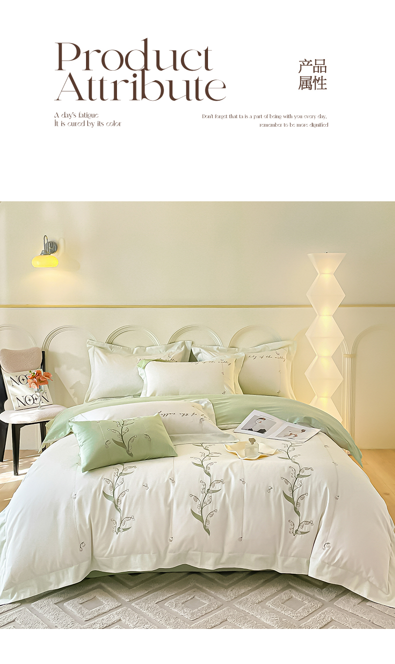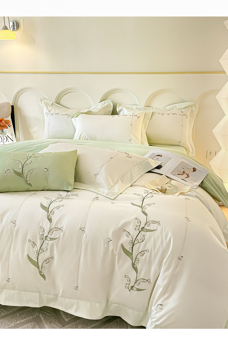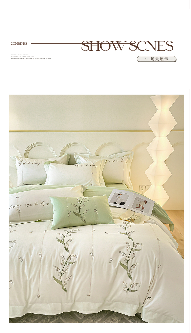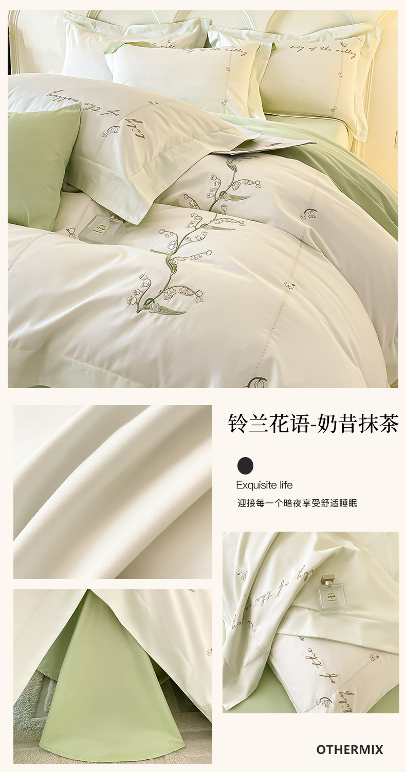 商品名称:蓝米卡夫 2024新品-全棉铃兰花语刺绣宽边系列 铃兰花语-奶昔抹茶