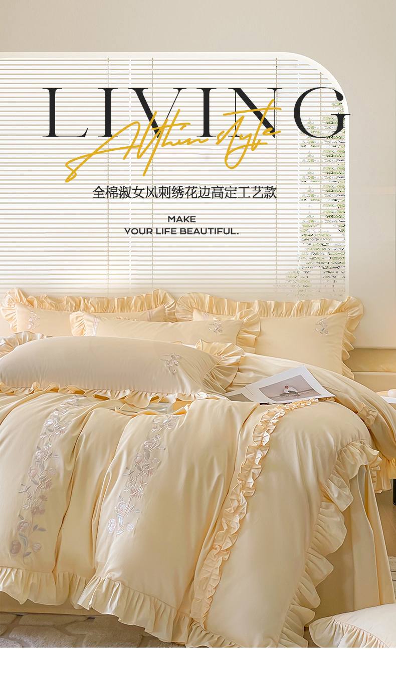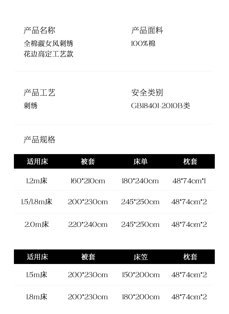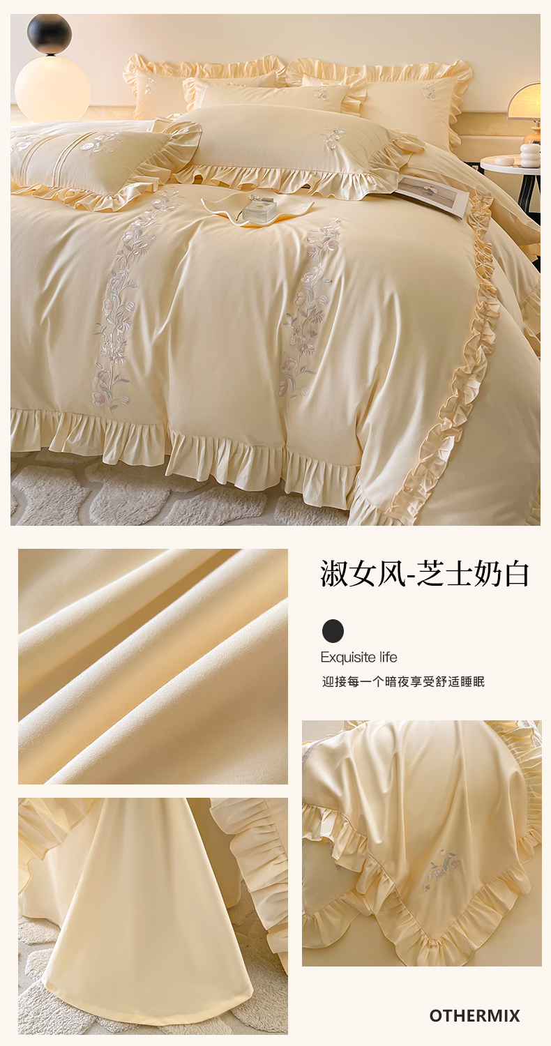 商品名称:蓝米卡夫 2024新品-全棉淑女风刺绣花边高定工艺款 淑女风-芝士奶白