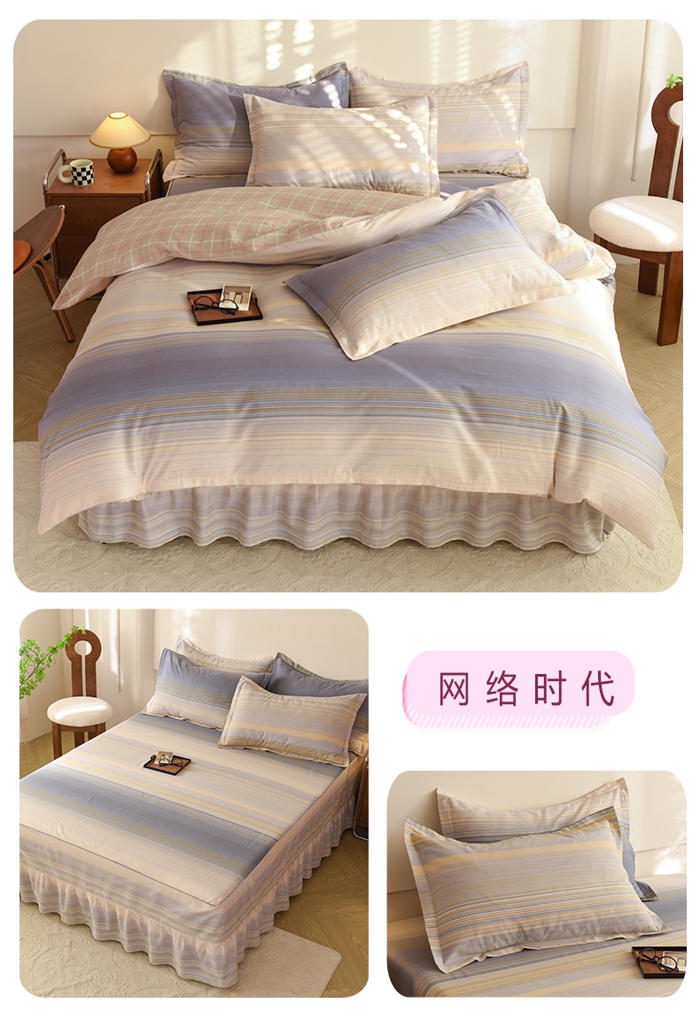 当前位置: 91家纺网 > 商品网购 > 床品套件 > 四件套 > 全棉普通四件套 > 八十八家纺 2025新款全棉12868床裙款四件套 网络时代