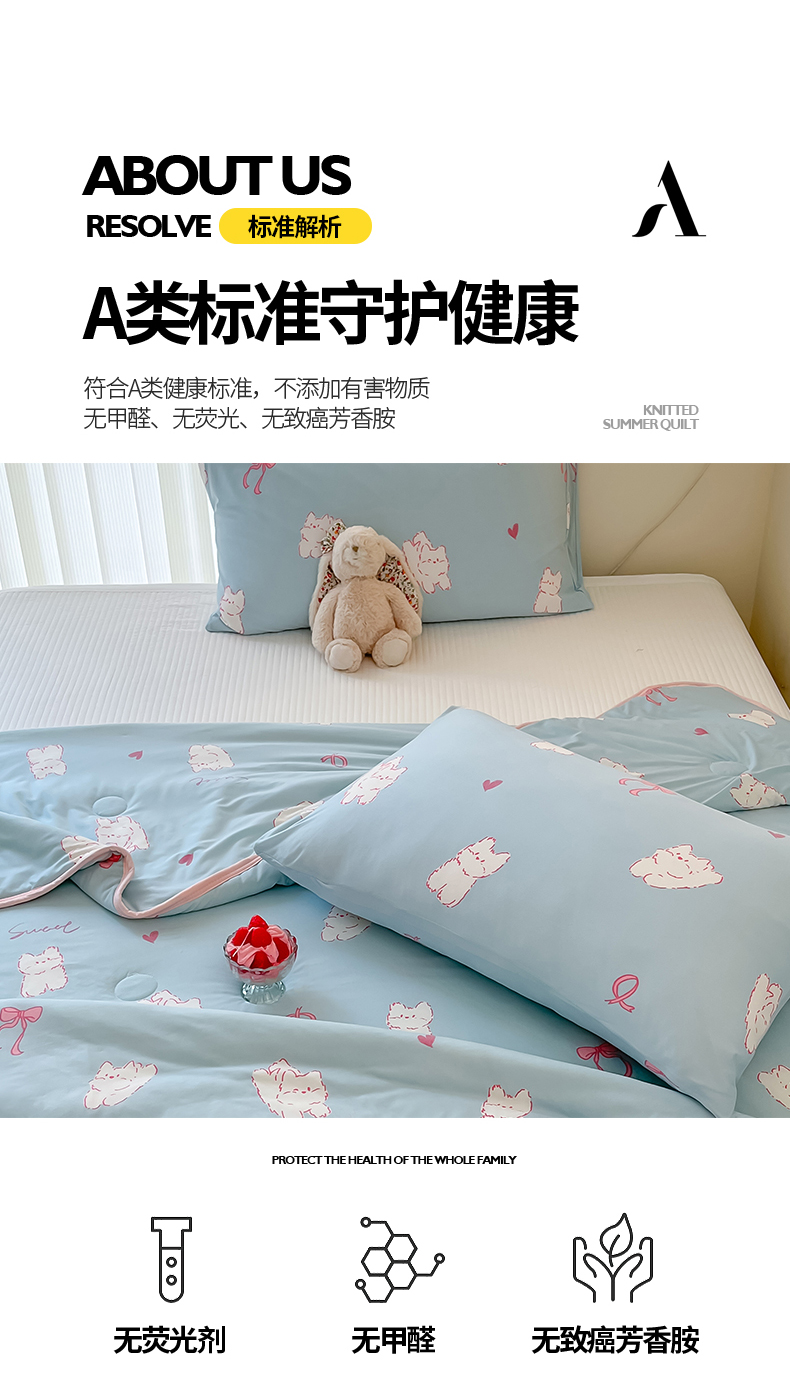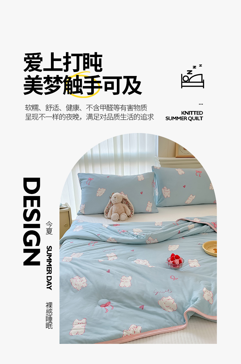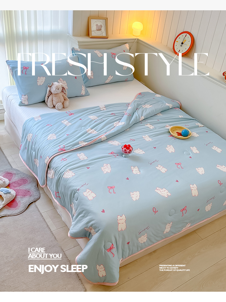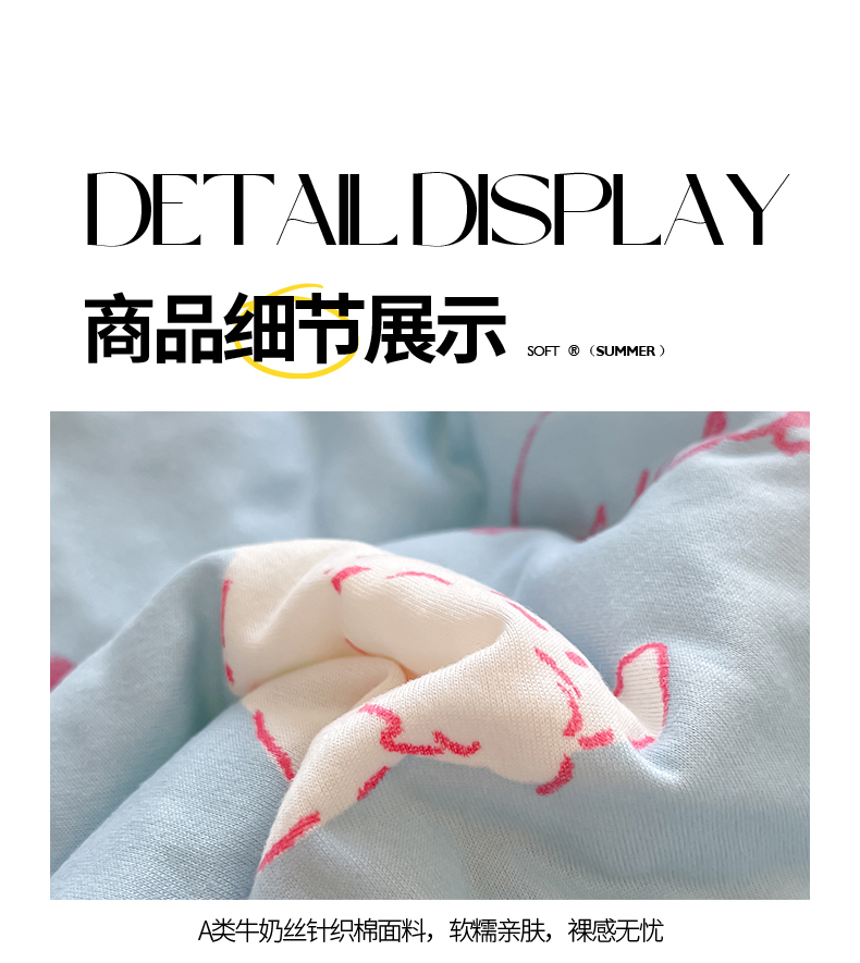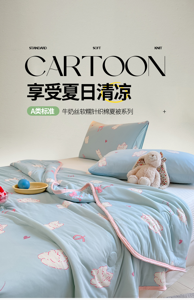 商品名称:桃子家居 2024新款A类高品质牛奶丝软糯针织棉夏被 针织棉-甜心猫咪