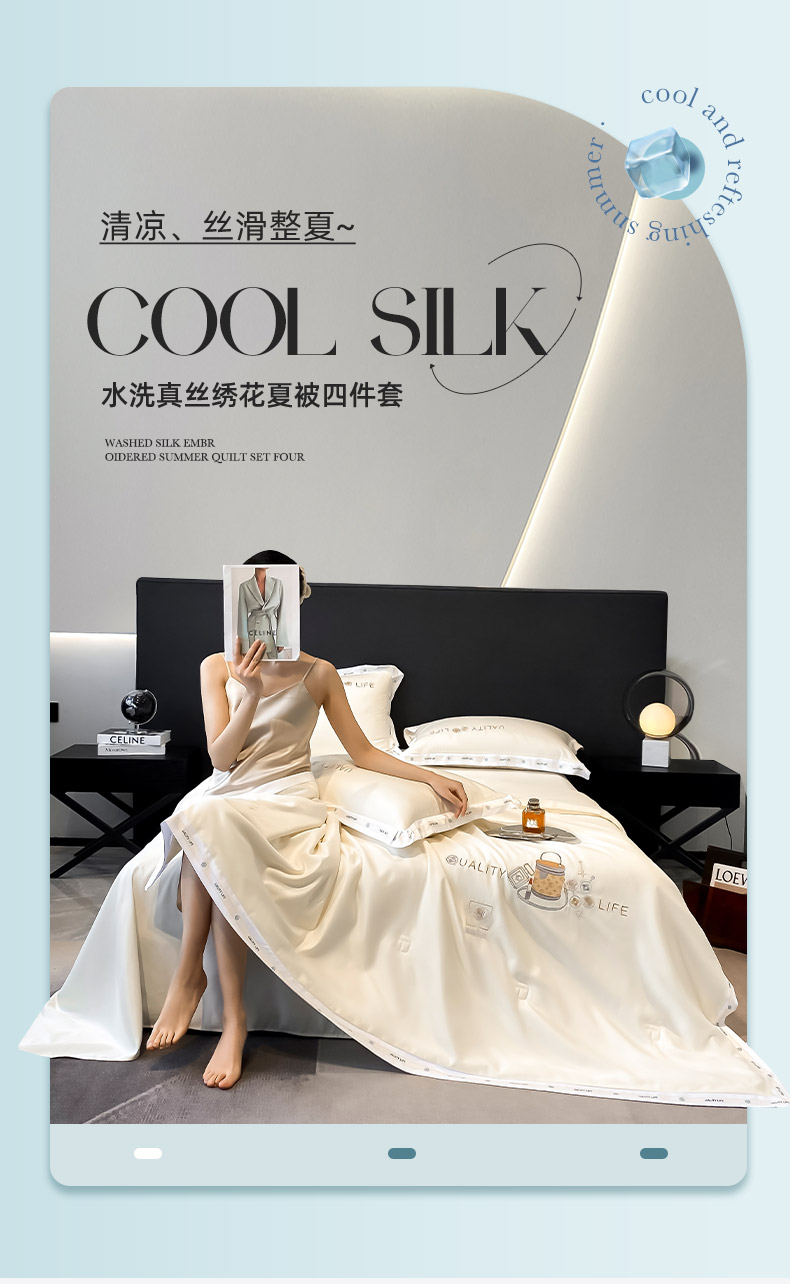 当前位置: 91家纺网 > 商品网购 > 床品套件 > 四件套 > 水洗真丝四件套 > 欧冠家纺 2024新款大牌风水洗真丝绣花床笠被套夏被四件套 路易系列 路易-月白