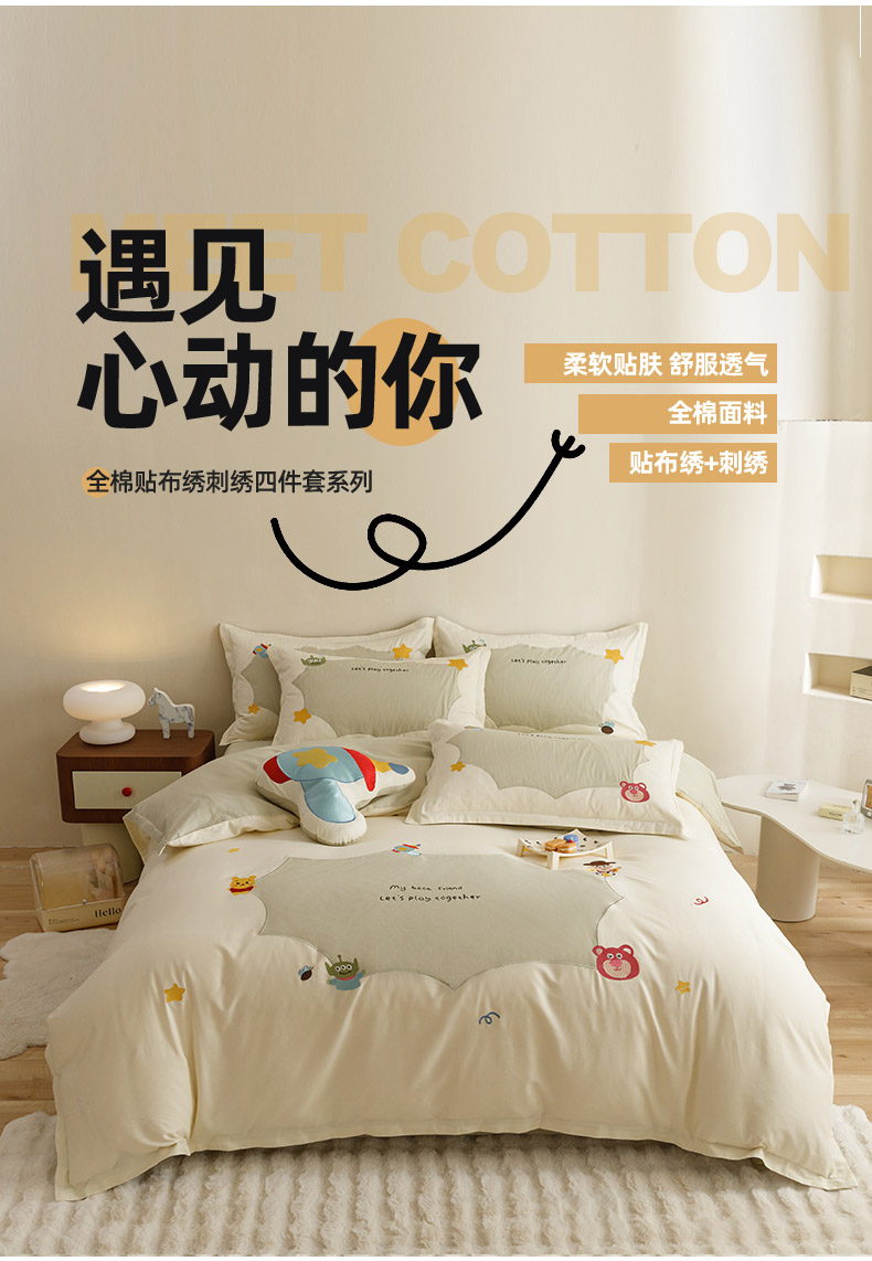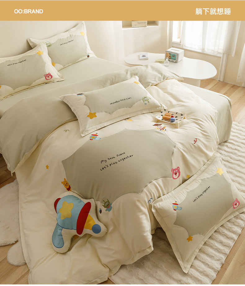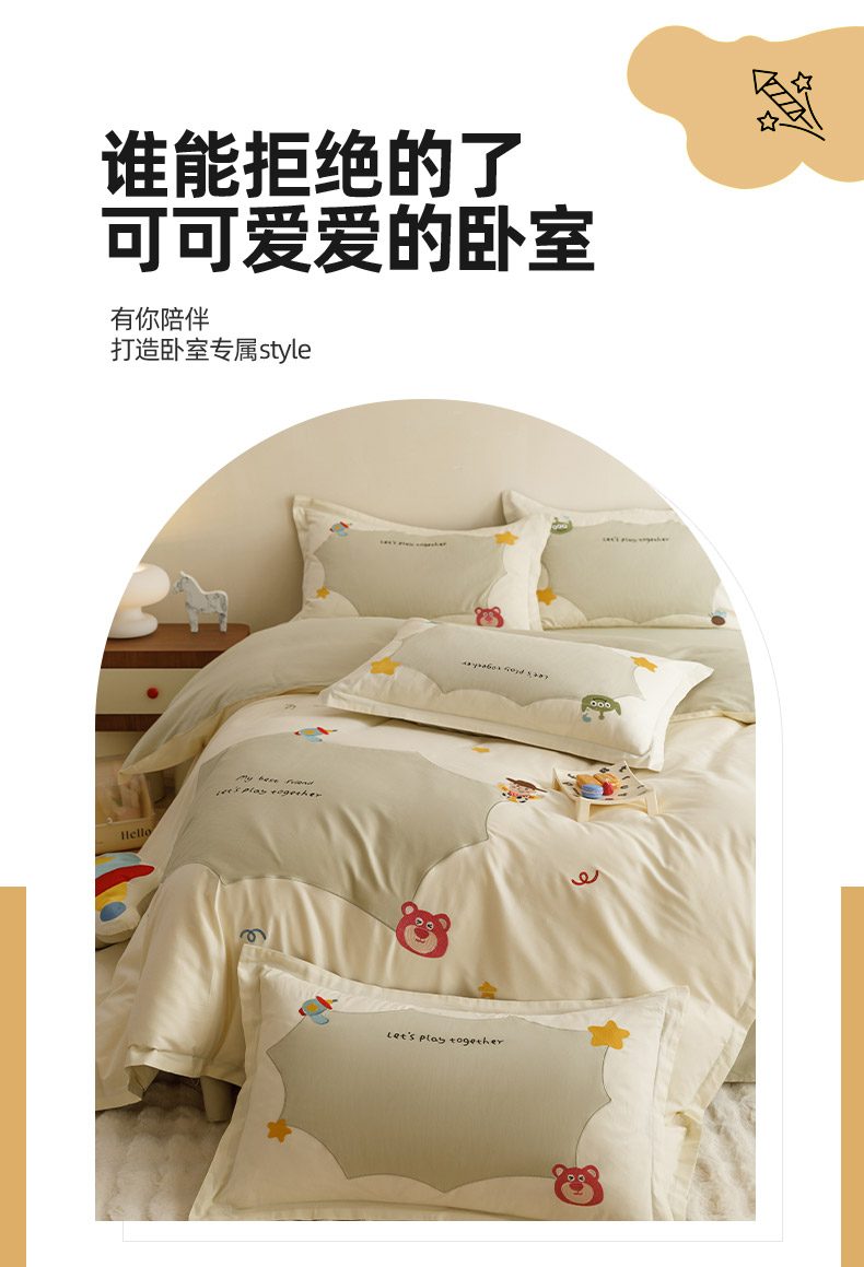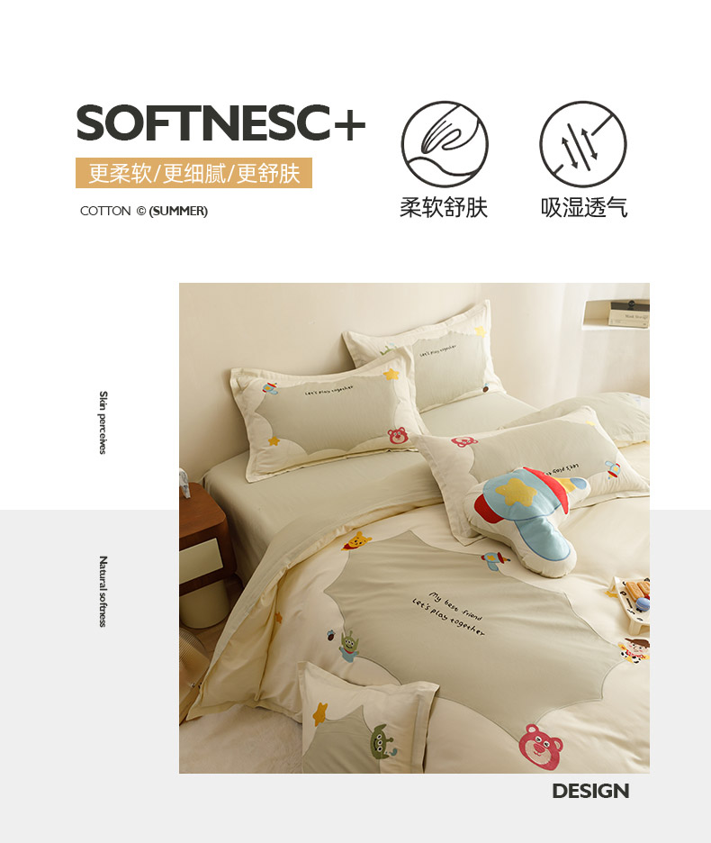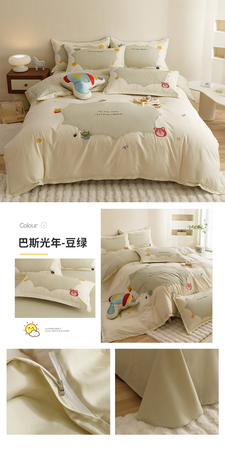 欧冠家纺 2024新款全棉床笠绣花卡通刺绣四件套巴斯光年系列 巴斯光年-豆绿