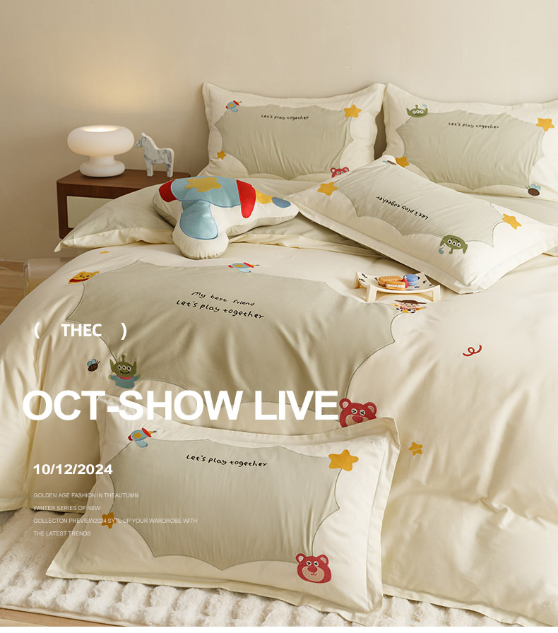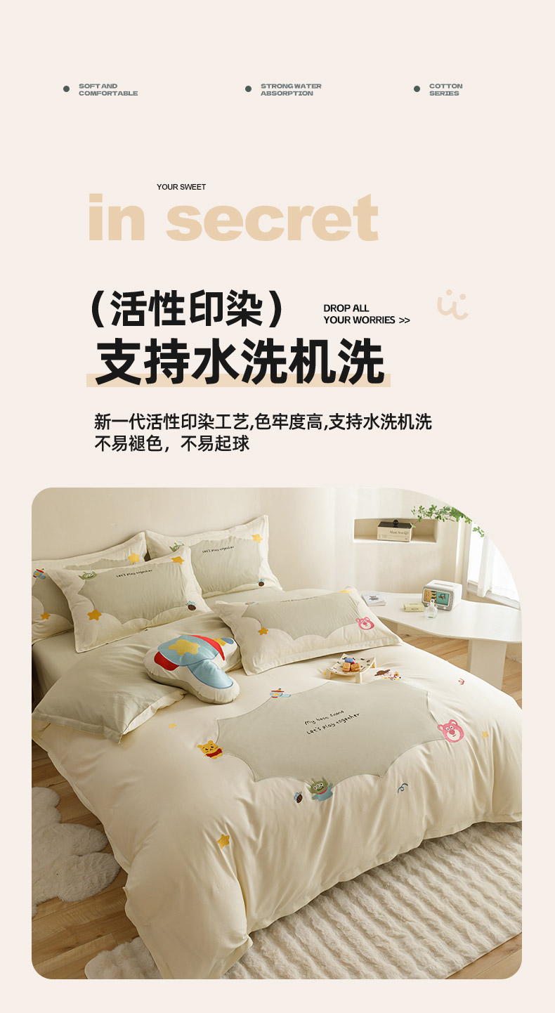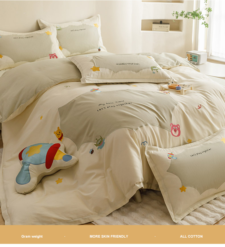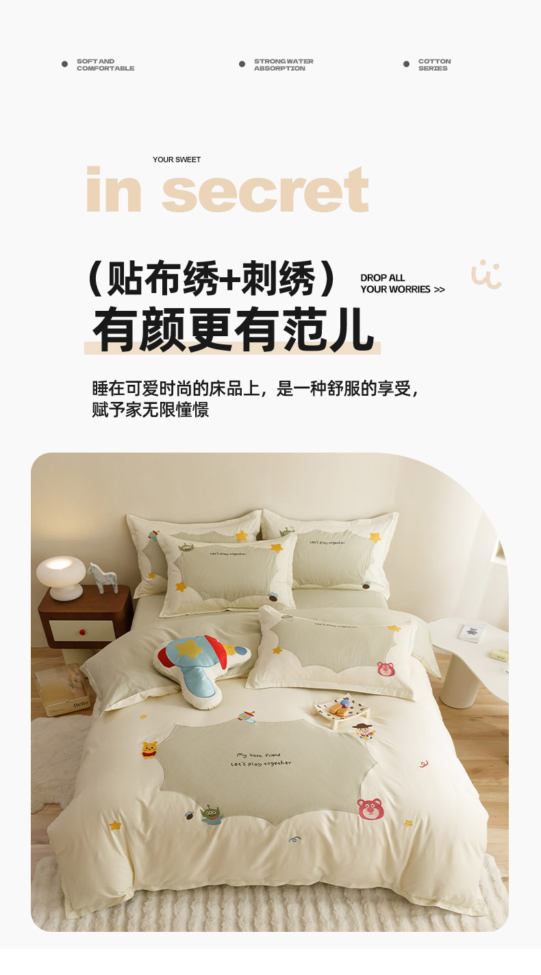 欧冠家纺 2024新款全棉床笠绣花卡通刺绣四件套巴斯光年系列 巴斯光年-豆绿