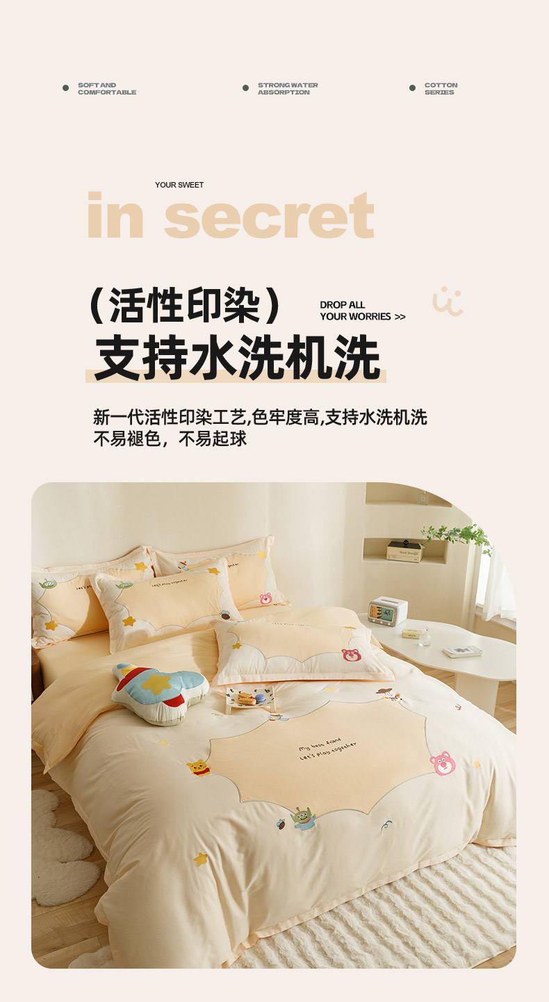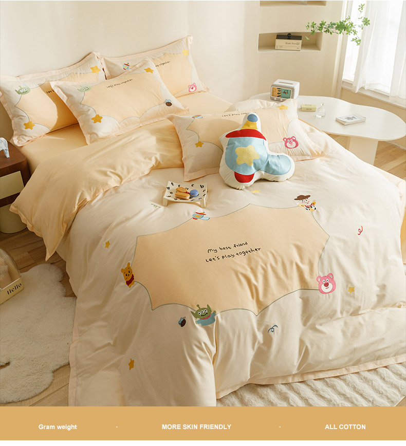 当前位置: 91家纺网 > 商品网购 > 床品套件 > 四件套 > 全棉普通四件套 > (总)丝印良品 2024新款全棉床笠绣花卡通刺绣四件套巴斯光年系列