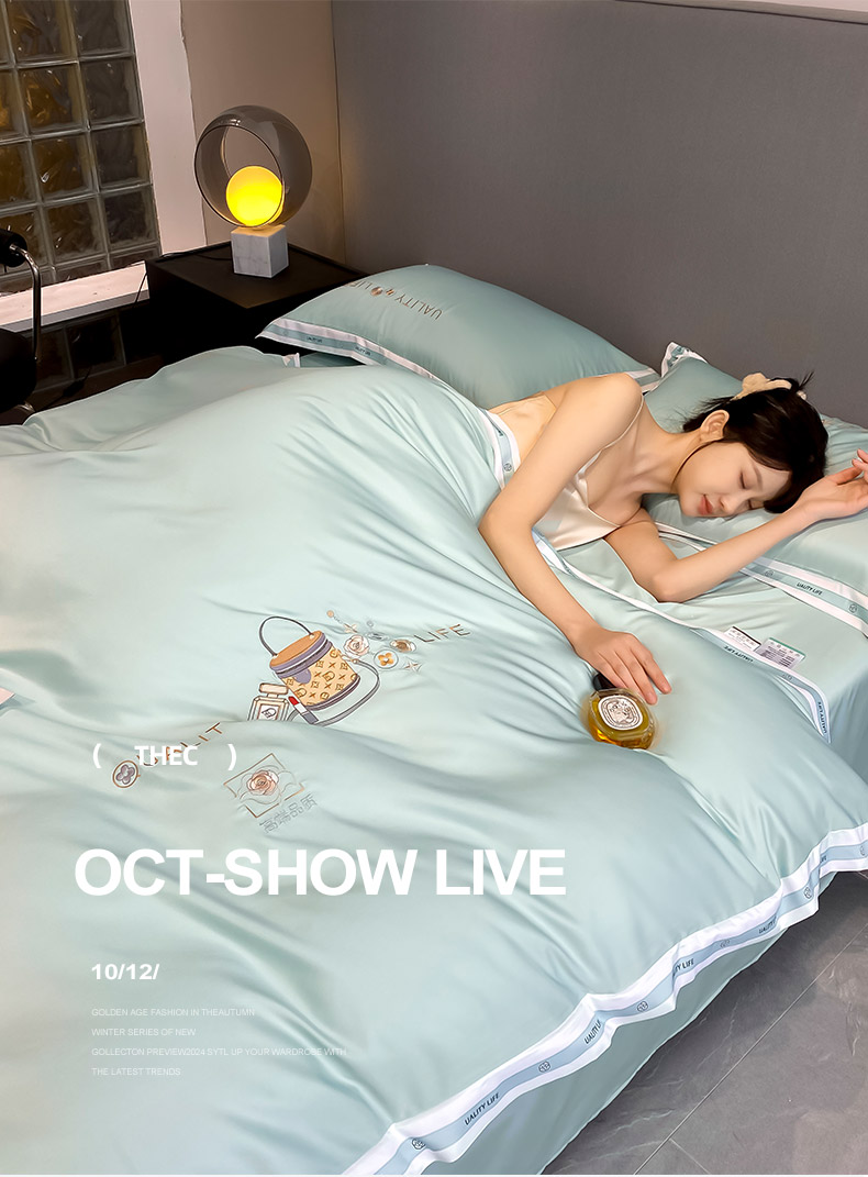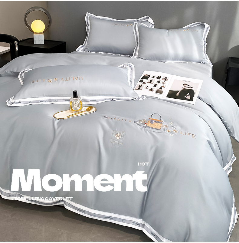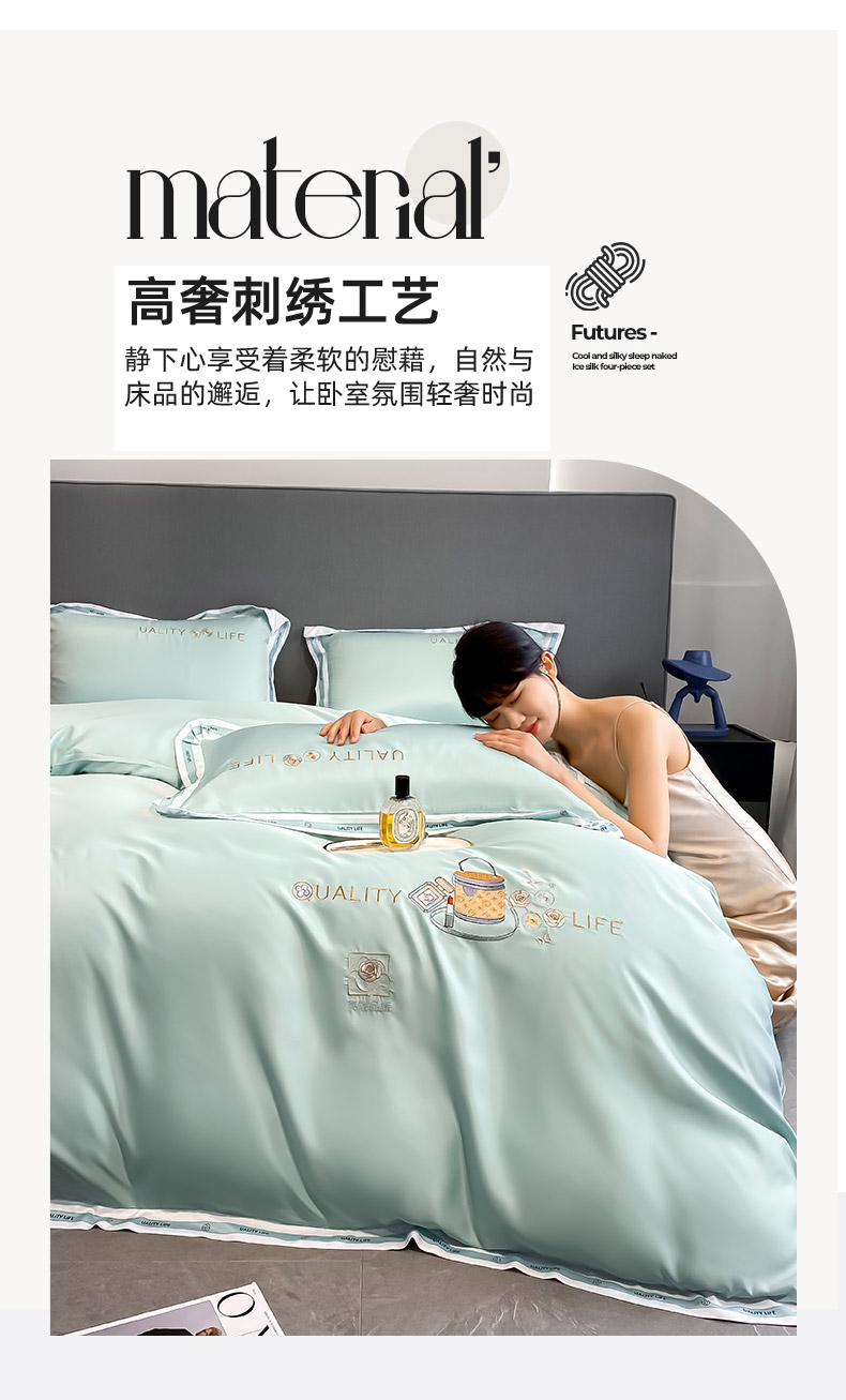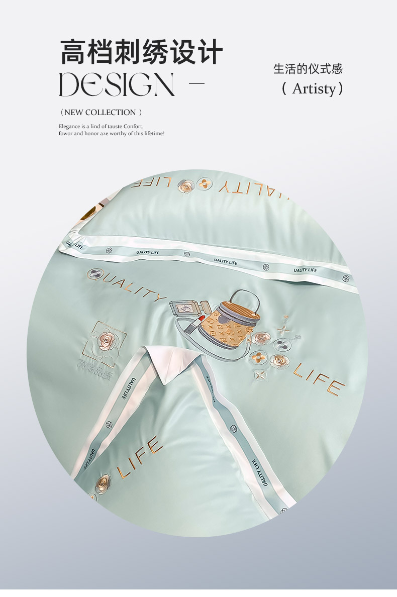 当前位置: 91家纺网 > 商品网购 > 床品套件 > 四件套 > 真丝四件套 > 绒世界 绒世界 2025新款大牌风60S水洗真丝刺绣床笠被套四件套香奈系列 香奈-山灰