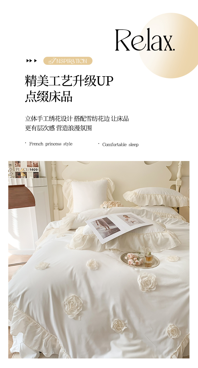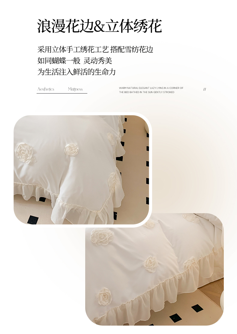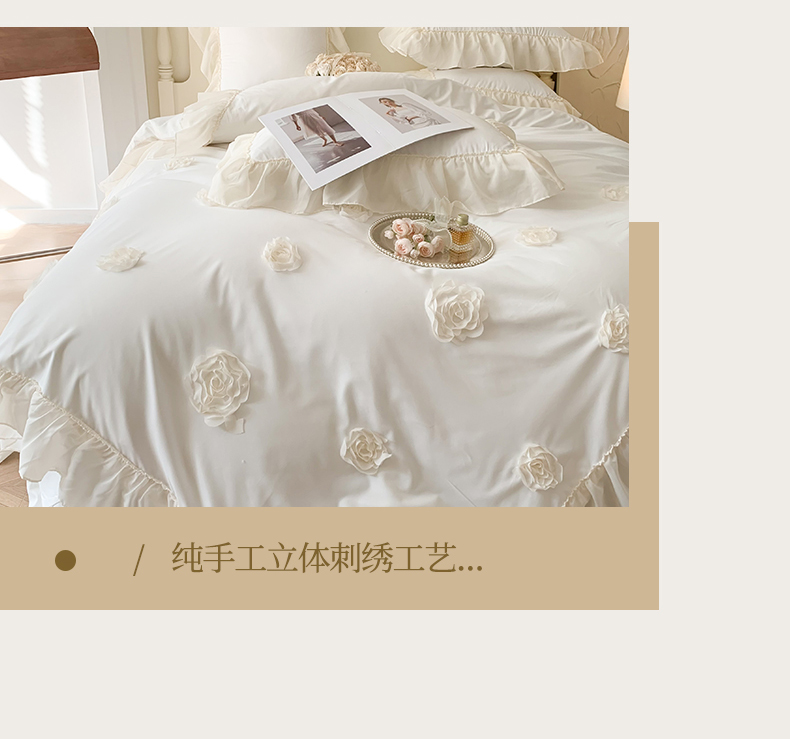 (总)吾欢心 2025秋冬新款加厚雕花绒婴儿绒安娜贝尔系列法式双层花边四件套,安娜贝尔白,安娜贝尔粉,安娜贝尔咖,安娜贝尔蓝,安娜贝尔绿,安娜贝尔紫