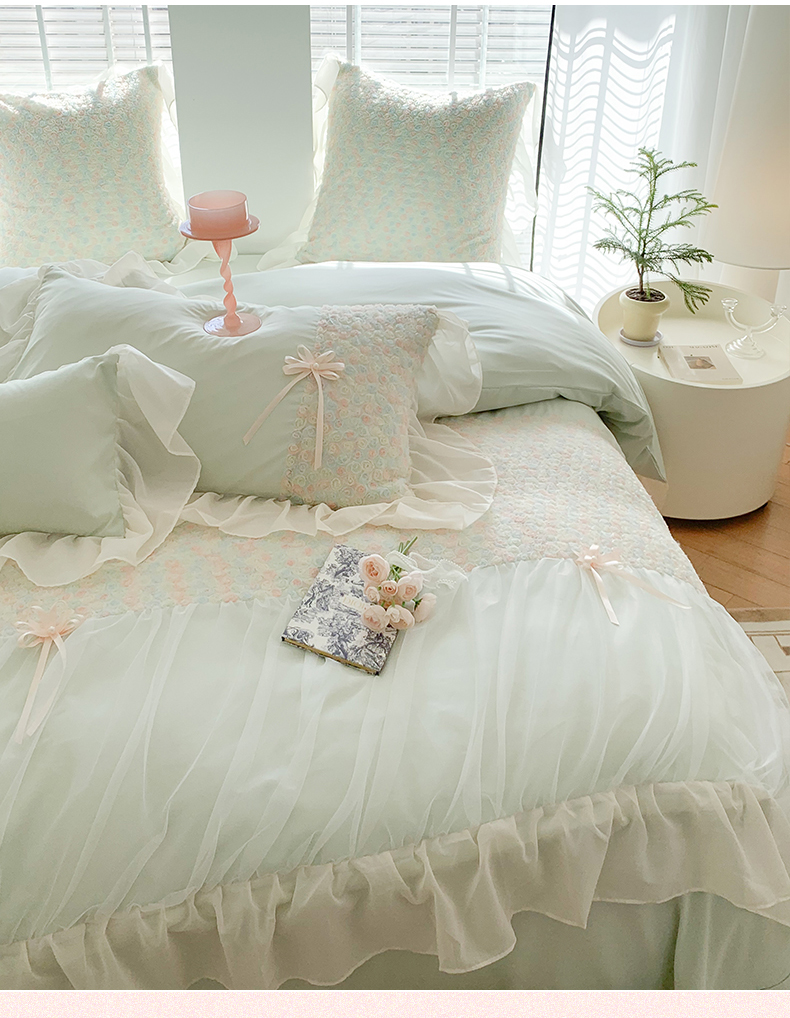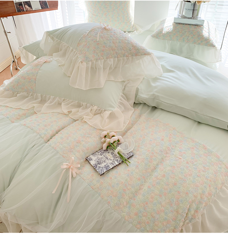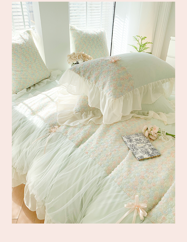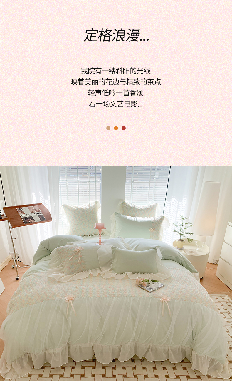 (总)吾欢心 2025新款公主风雪纺边四季通用夹棉床盖,床盖白,床盖粉,床盖黄,床盖咖,床盖绿,床盖抹茶绿,床盖紫