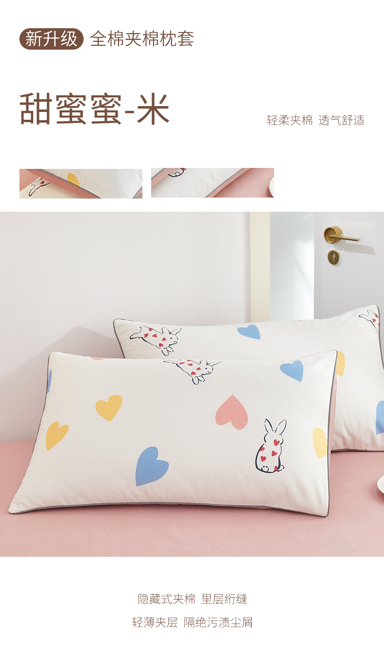 商品名称:元元 2024新款小清新隐藏式夹棉套件单品-夹棉枕套 甜蜜蜜-米