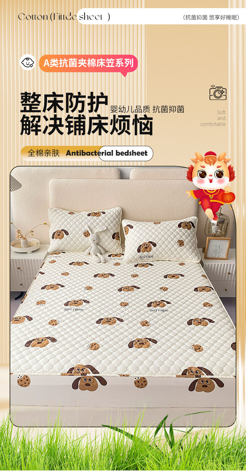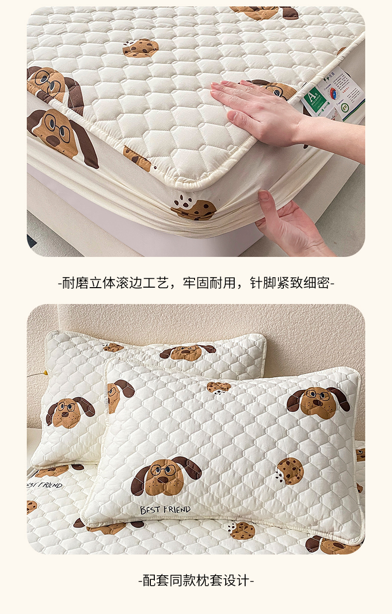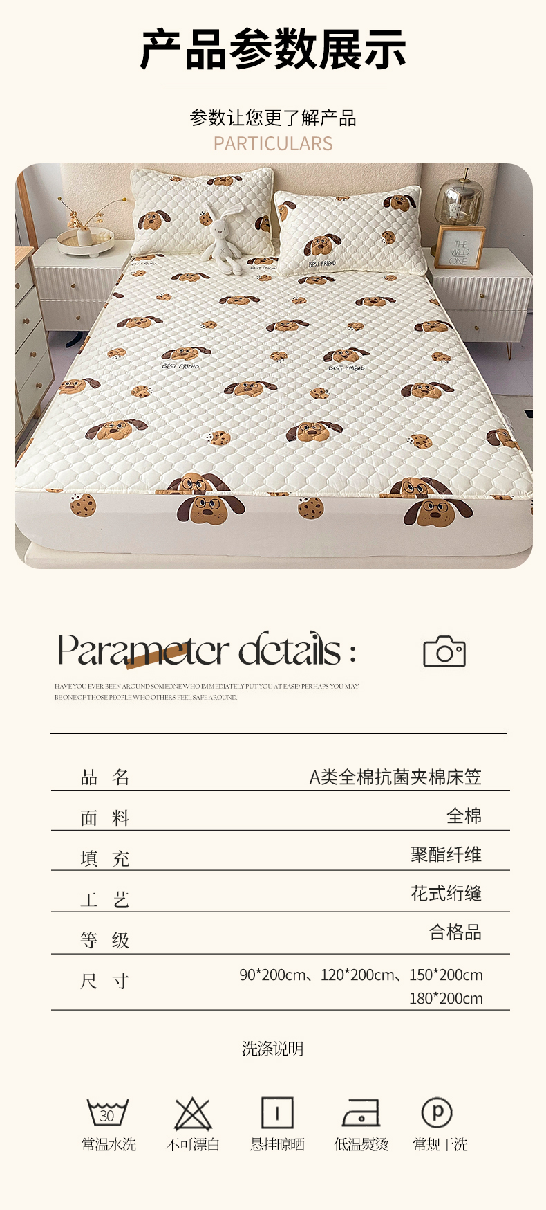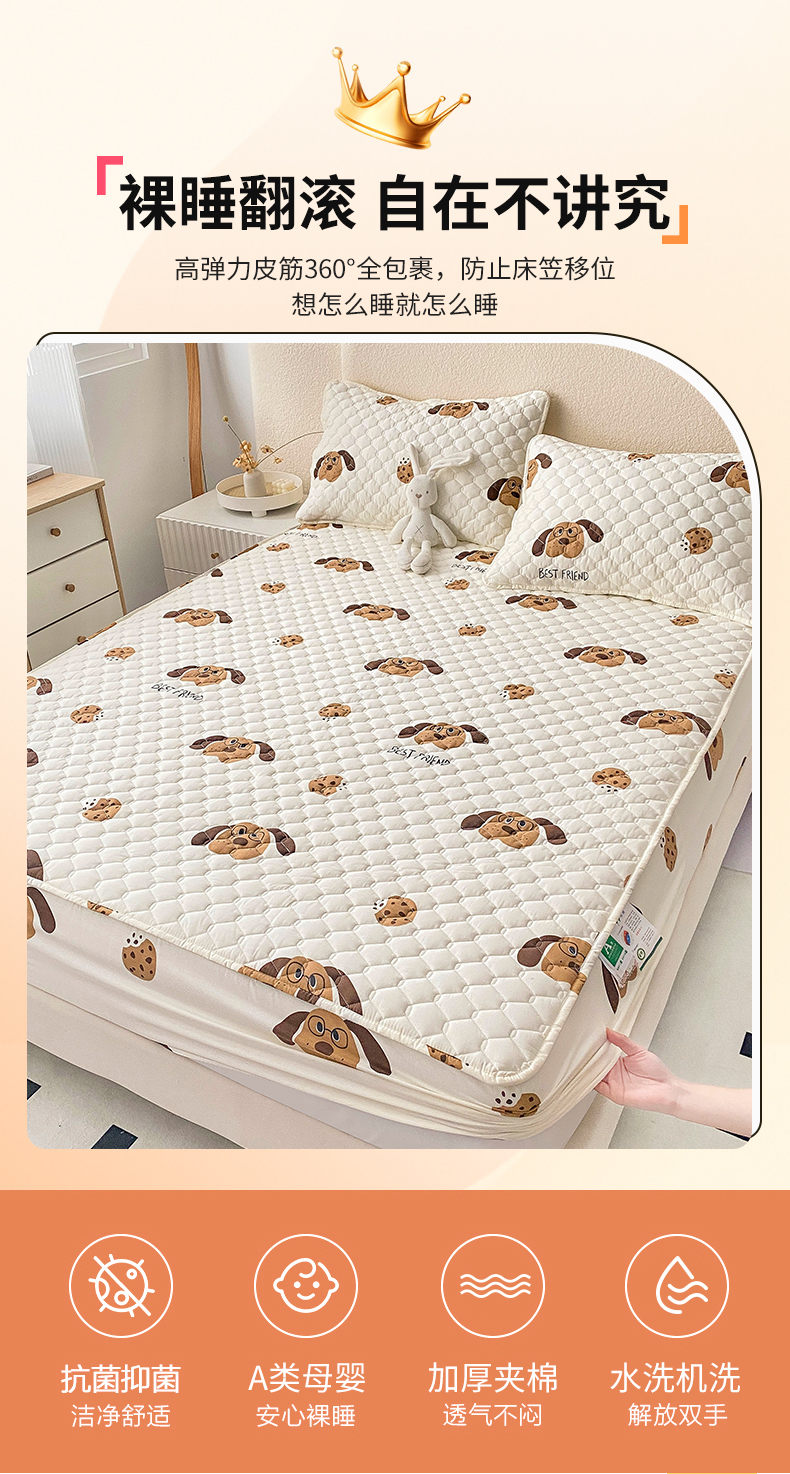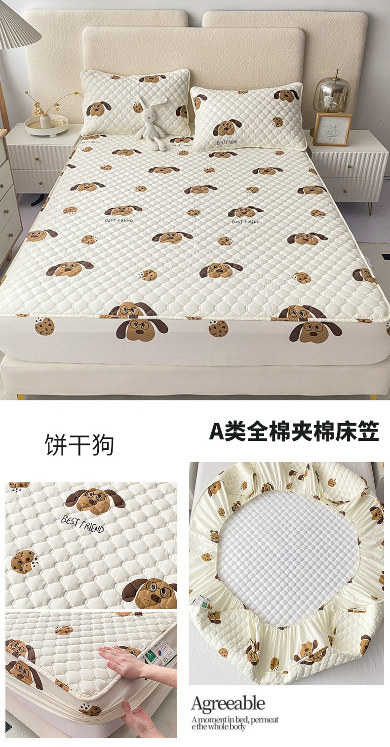 九亭家纺 2024新款A类全棉抗菌夹棉床笠 全棉-饼干狗