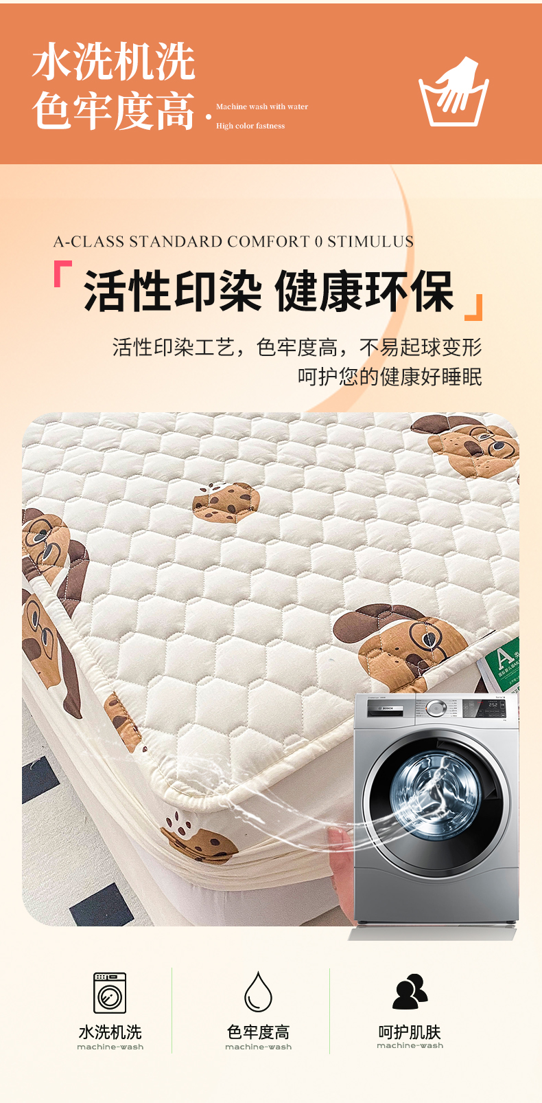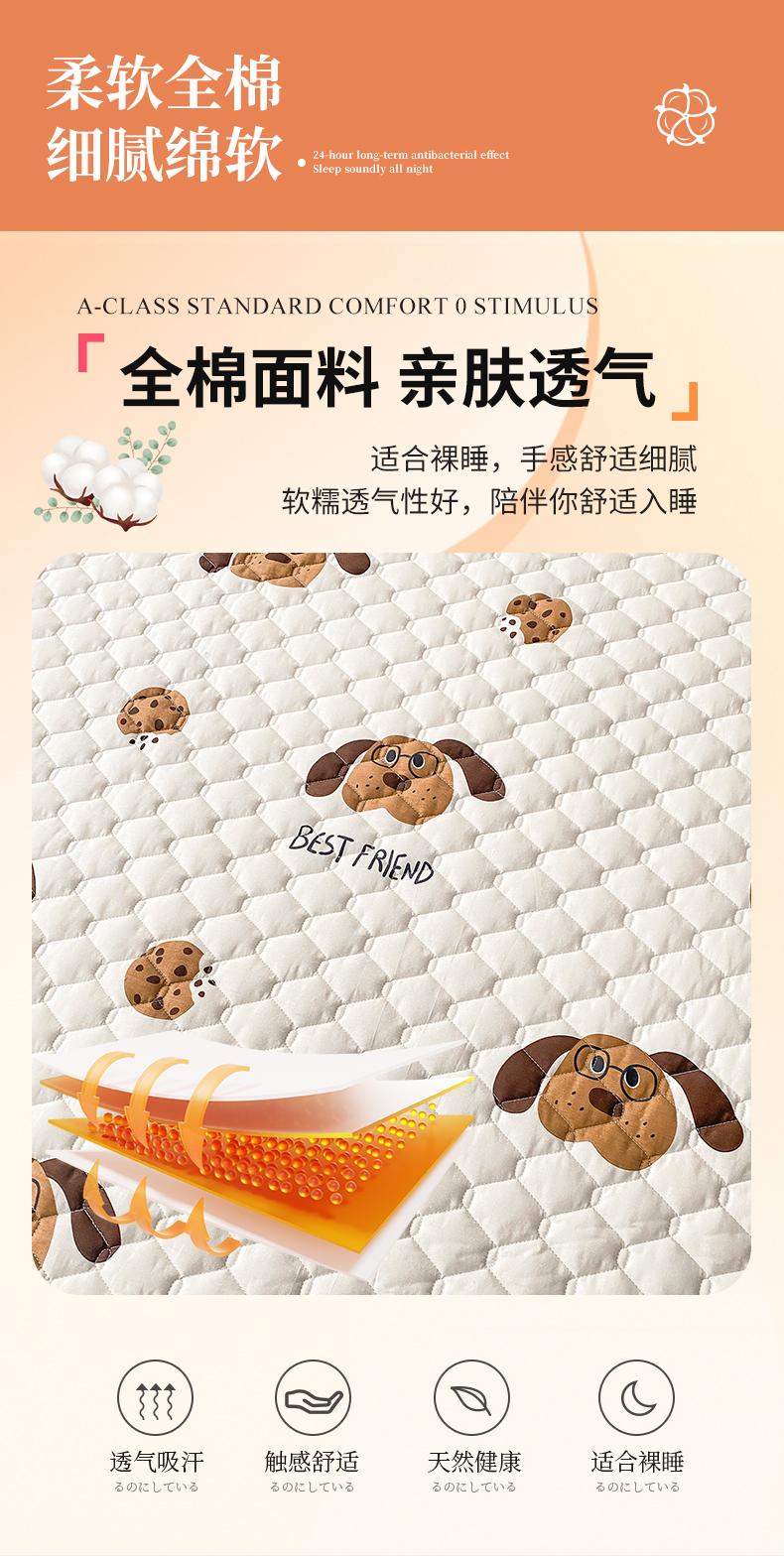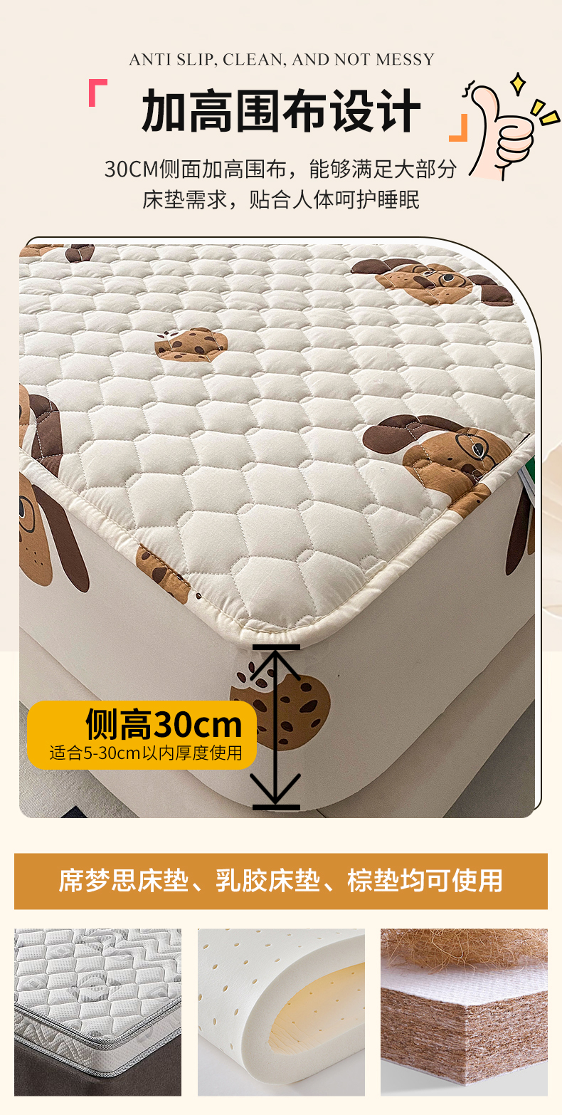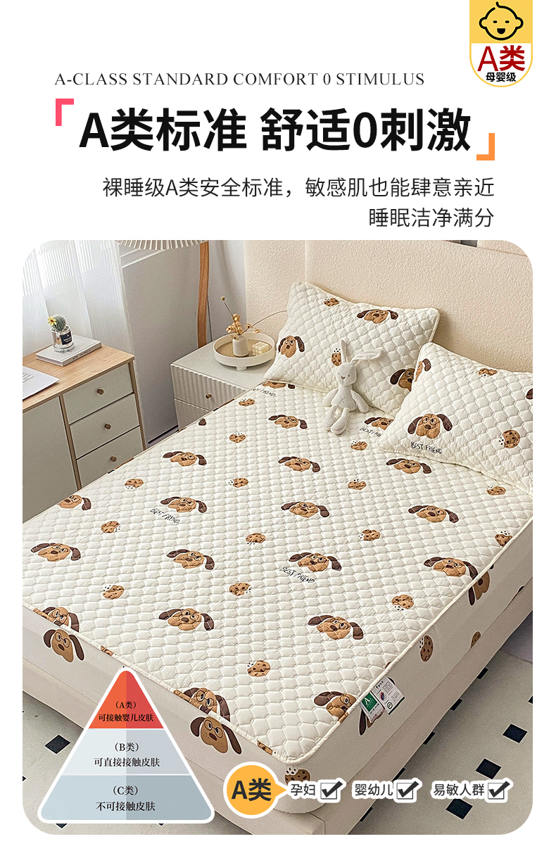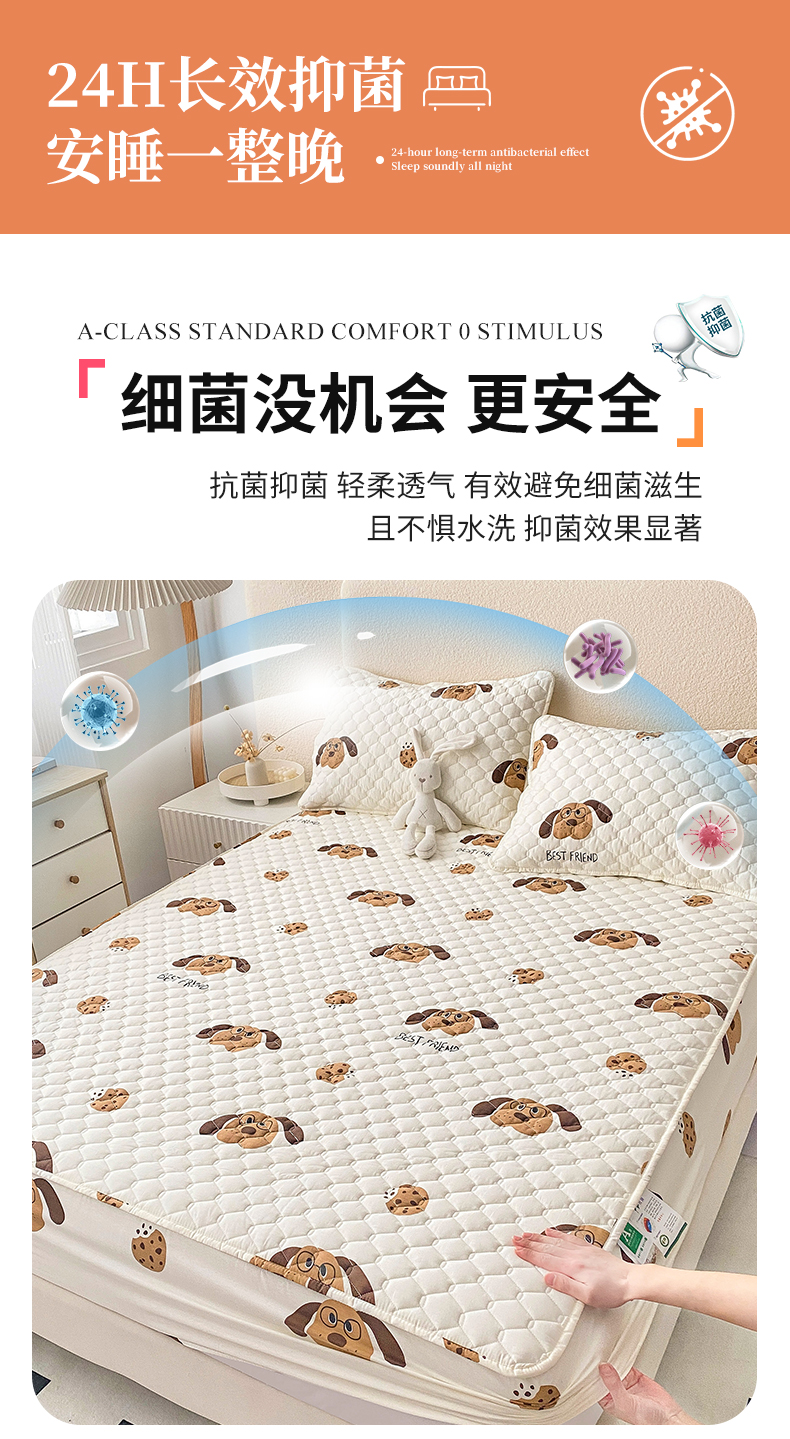 九亭家纺 2024新款A类全棉抗菌夹棉床笠 全棉-饼干狗