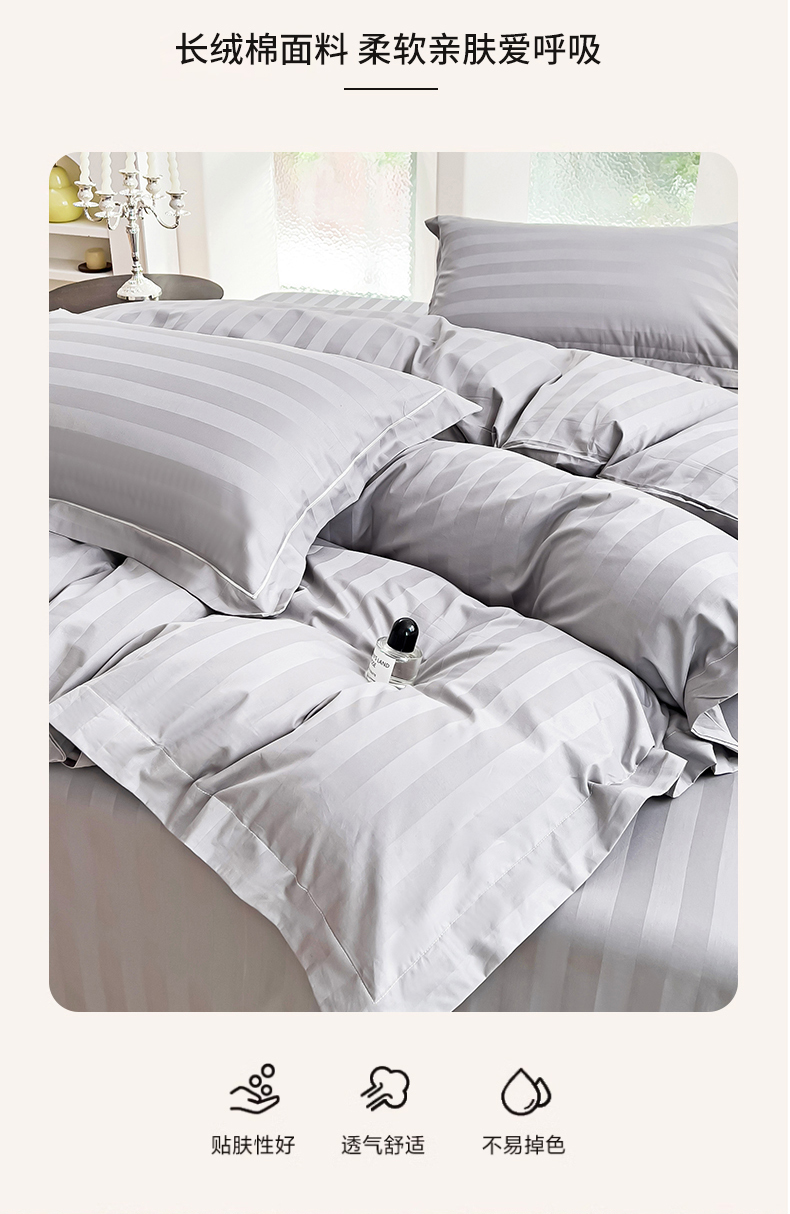 商品名称:品乐家纺 2024新款60支长绒棉条纹宽边四件套 宽边条纹灰