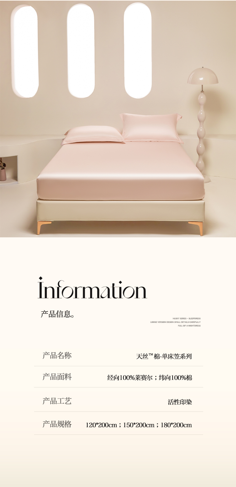 商品名称:涵宸 2024新款兰精天丝棉纯色单品-床笠 床笠-肉桂粉