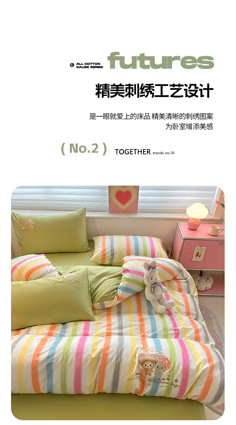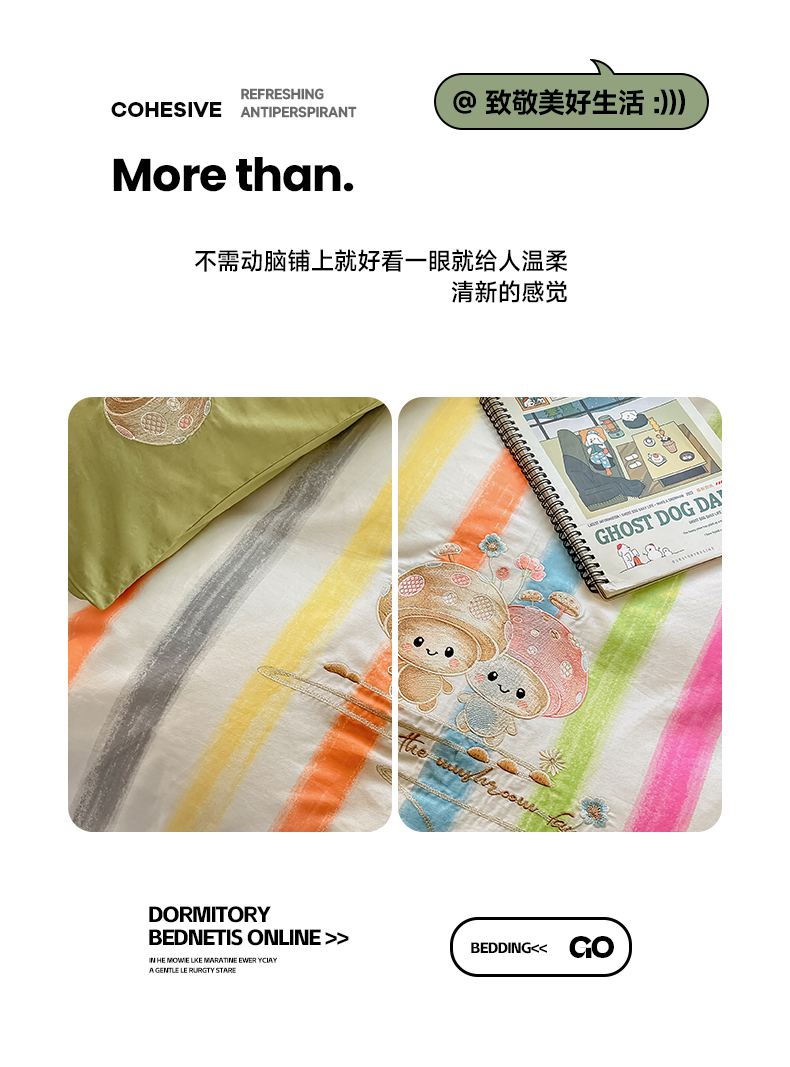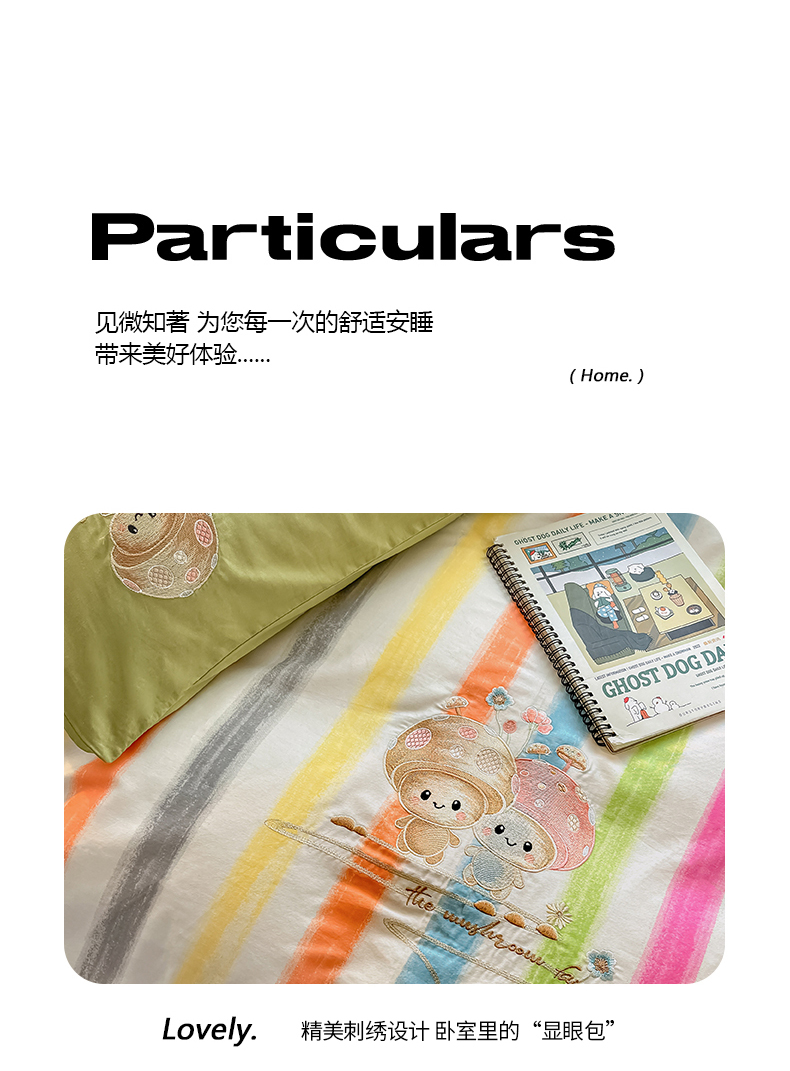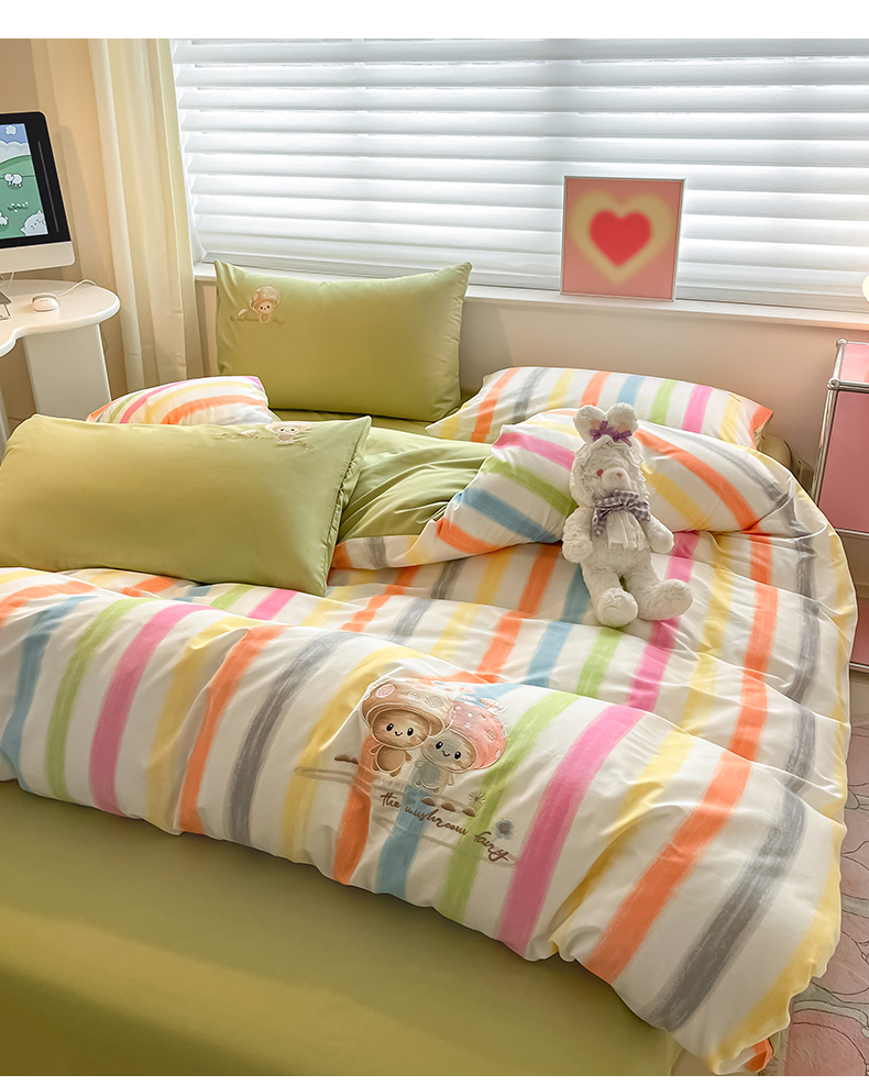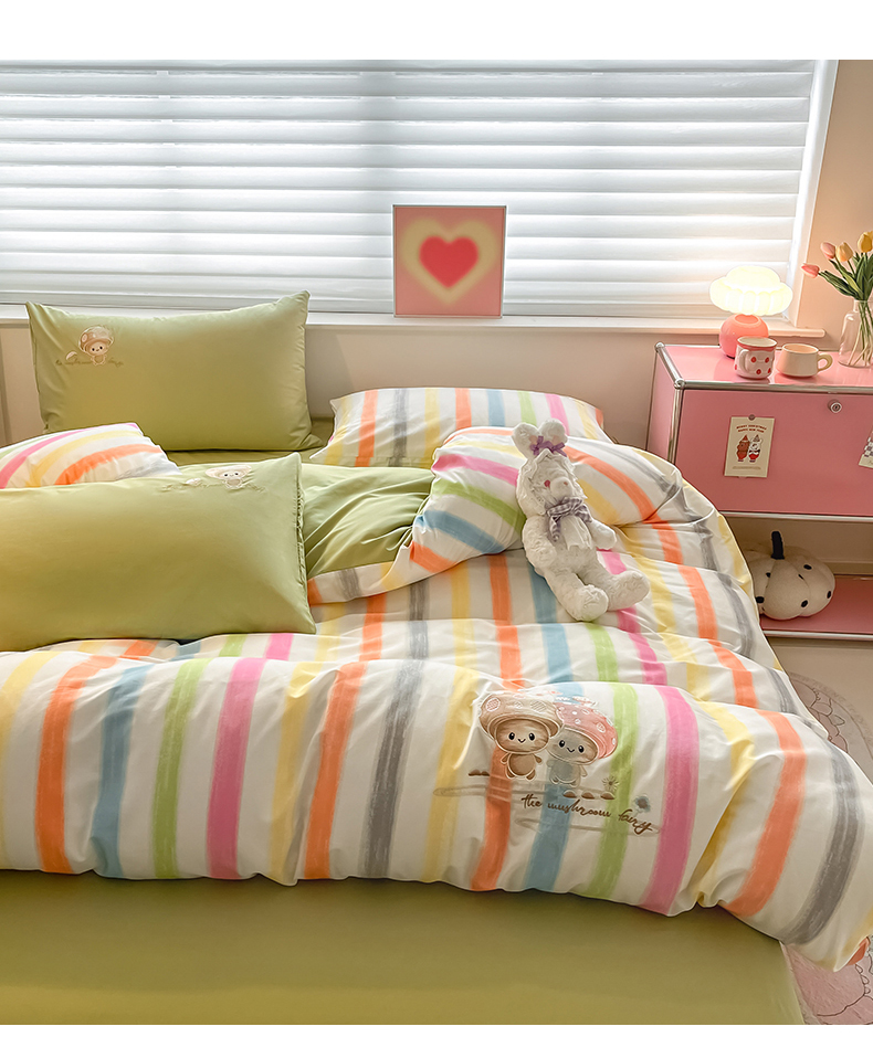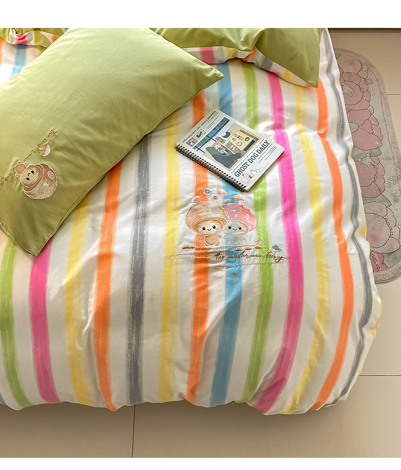 商品名称:2024蜜柚新品直播电商全棉13372ins博主风刺绣四件套 甜蜜蘑菇