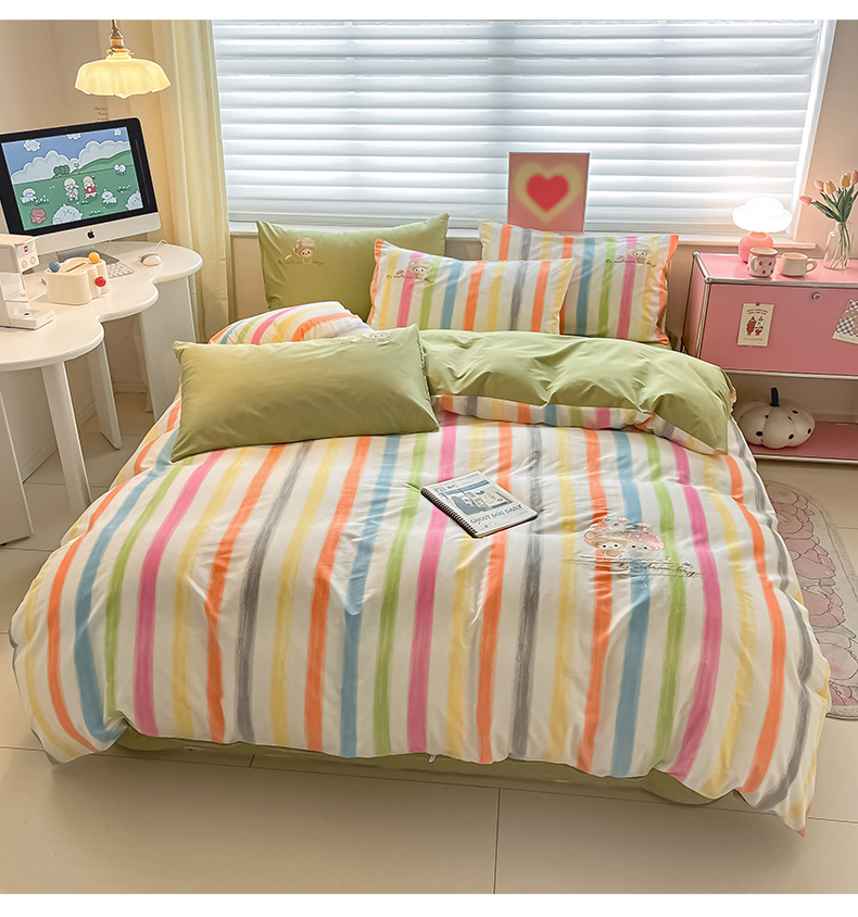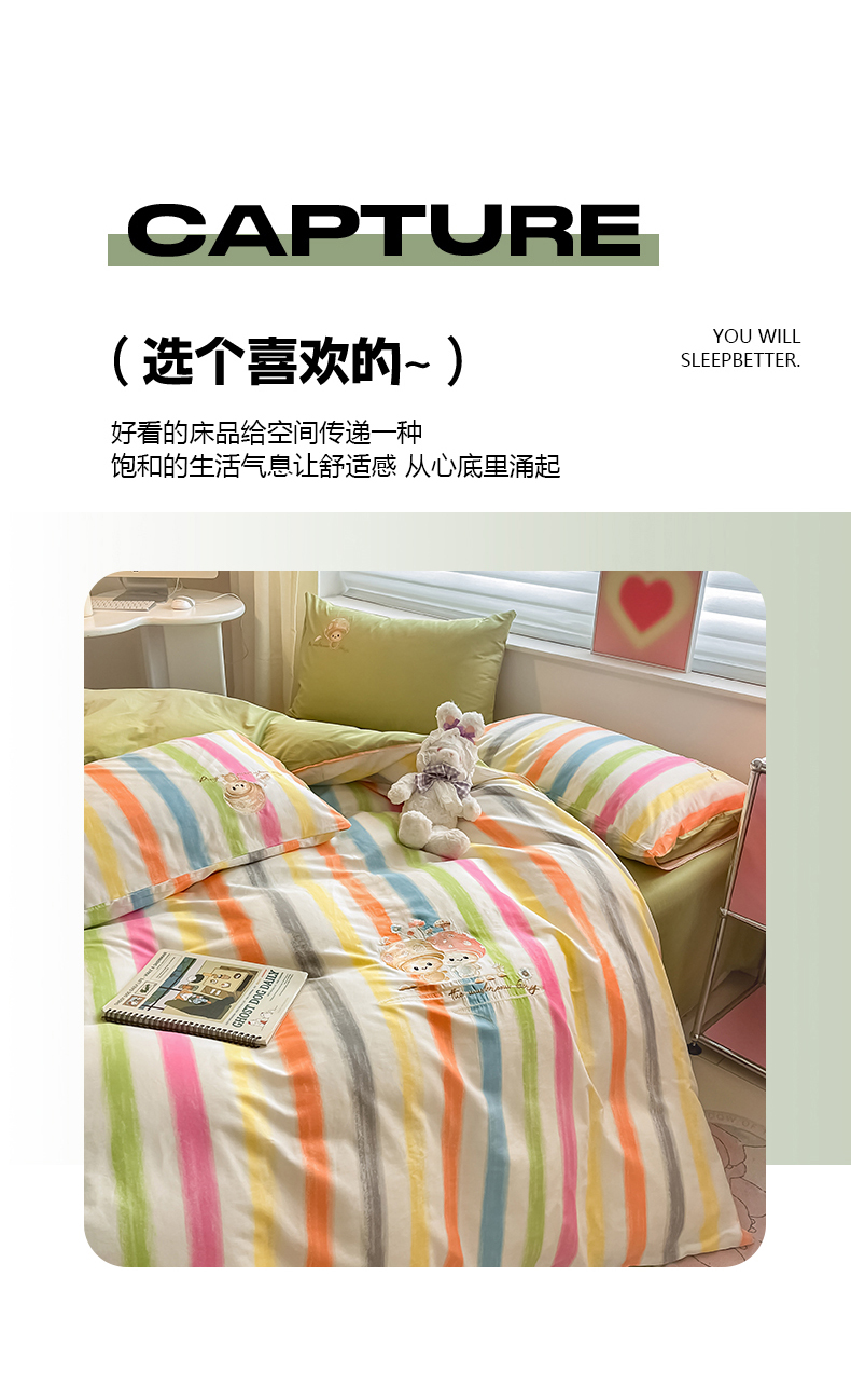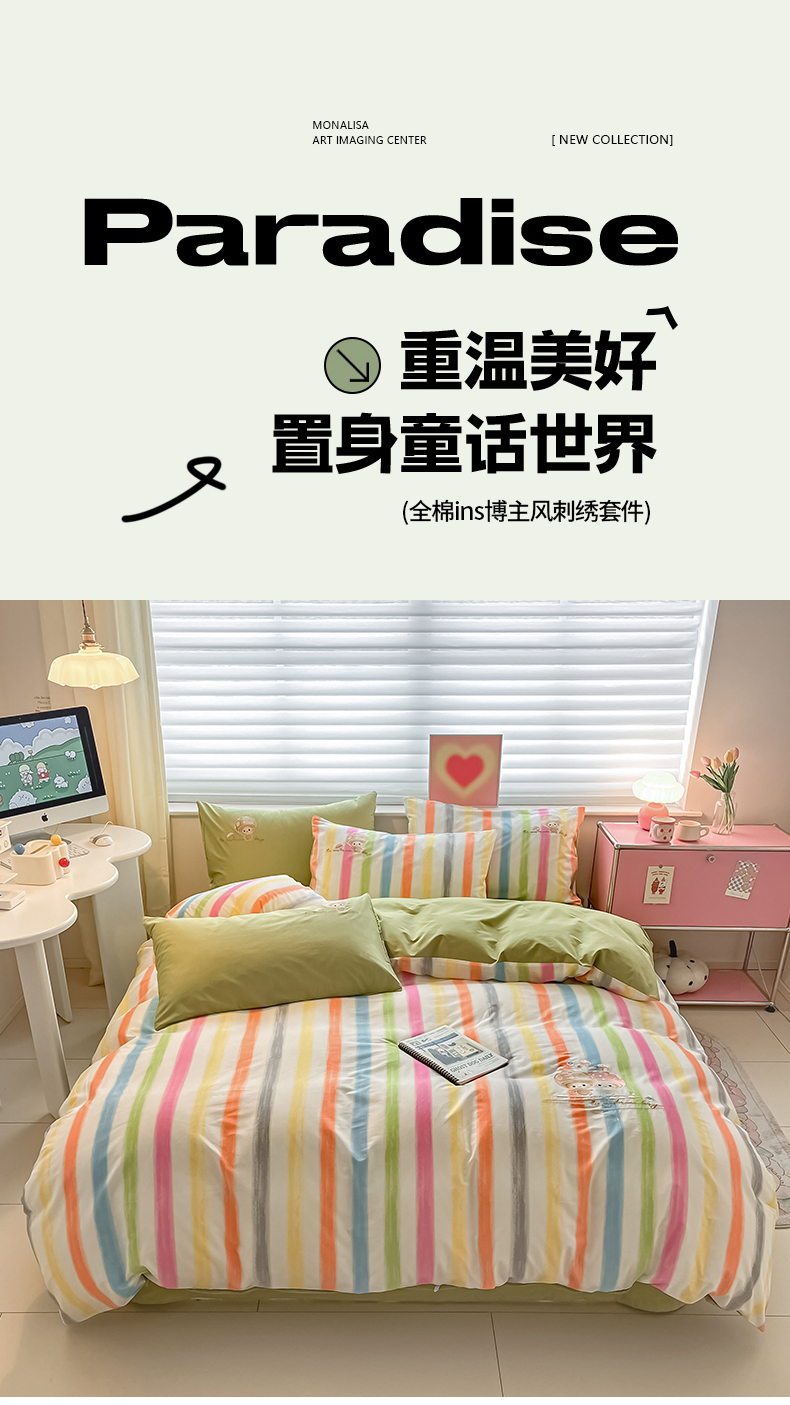 (总)蜜柚 2025秋冬新款色织水洗棉贴布花边款四件套,童趣-浅玉,童趣-卡其,童趣-洋气红