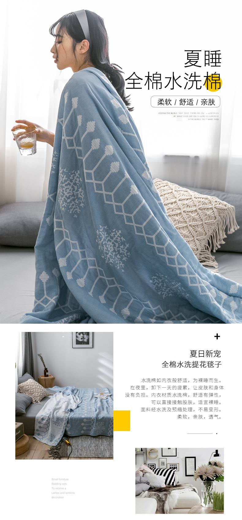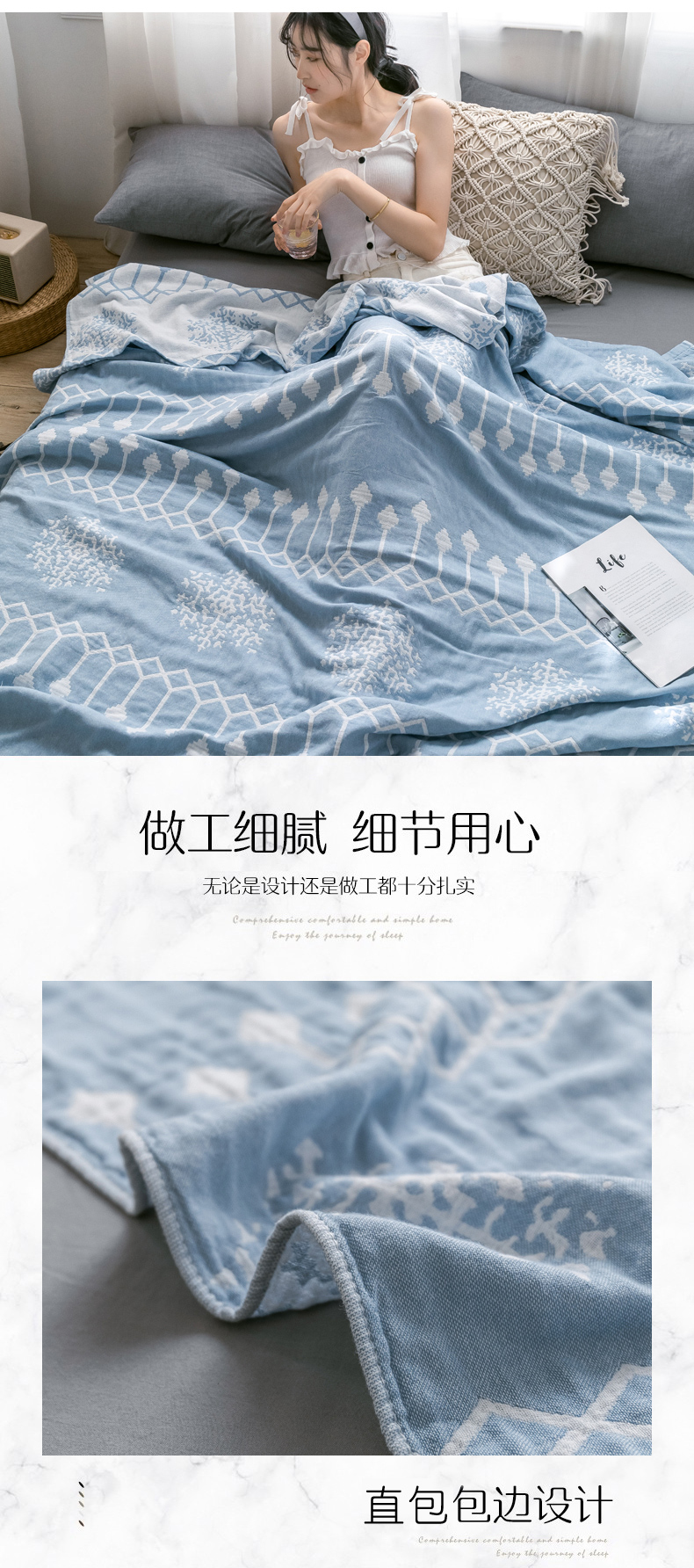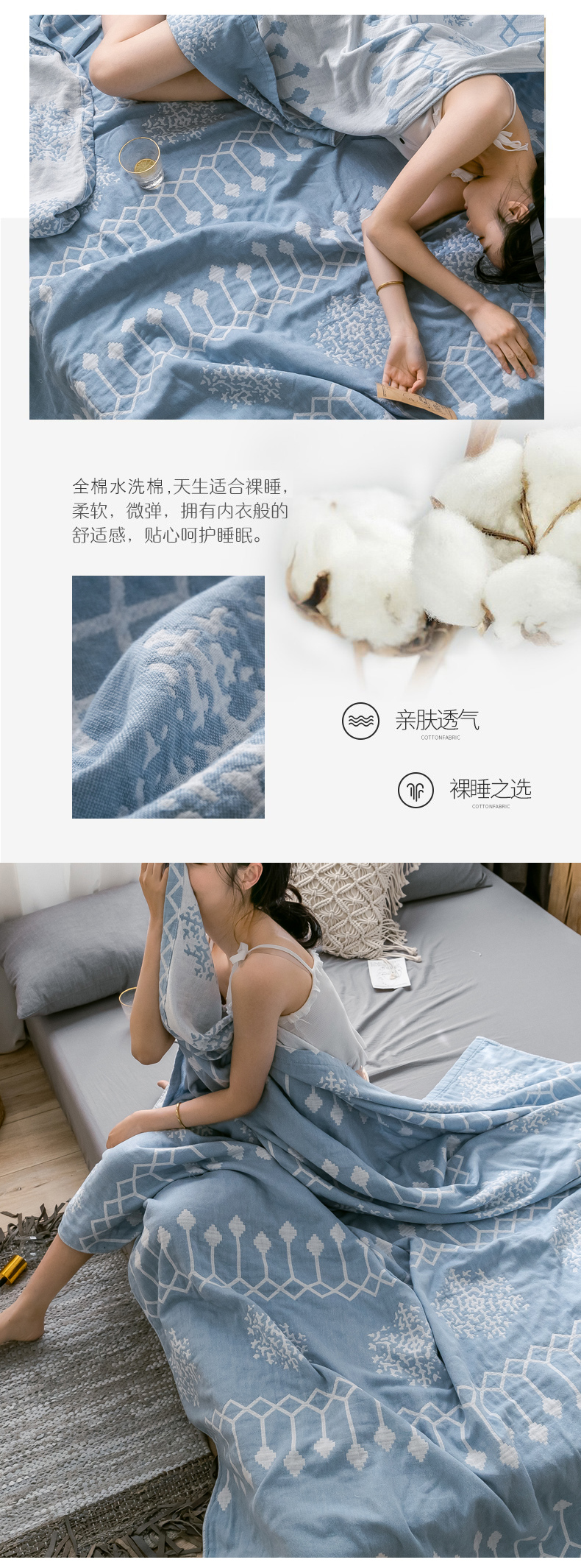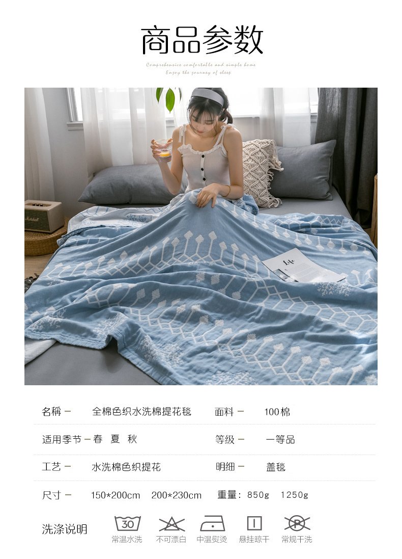 商品名称:朴尔家纺-毛巾被 2024新款三层水洗棉全棉纱布毛巾被 印第安-冰蓝
