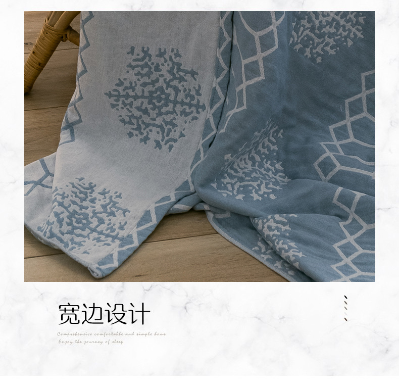 朴尔家纺-毛巾被 2024新款三层水洗棉全棉纱布毛巾被 印第安-冰蓝