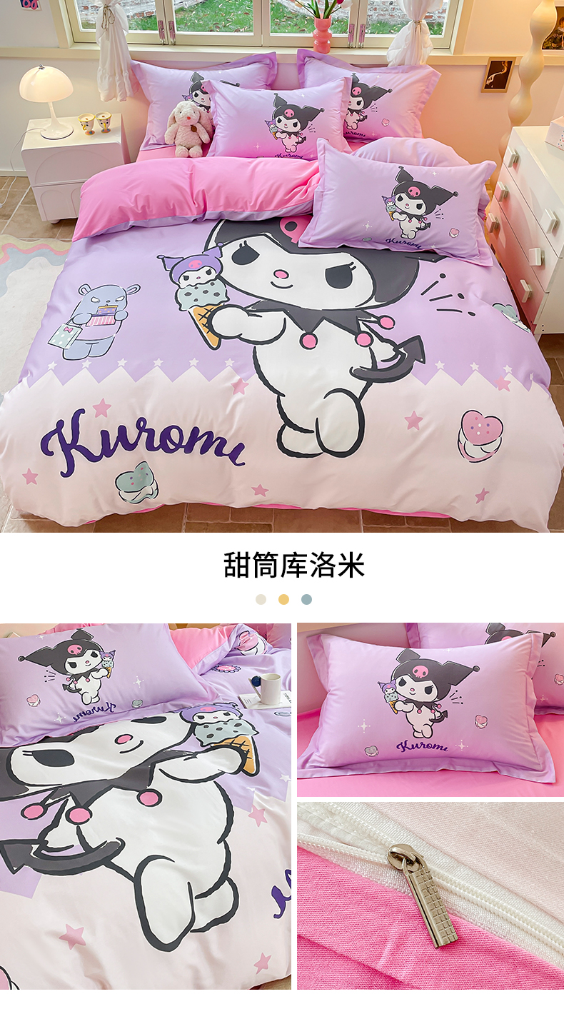 当前位置: 91家纺网 > 商品网购 > 床品套件 > 四件套 > 全棉普通四件套 > 孩子王(原鼎盛) 2025新款三丽鸥系列全棉活性大版印花卡通学生四件套 甜筒库洛米