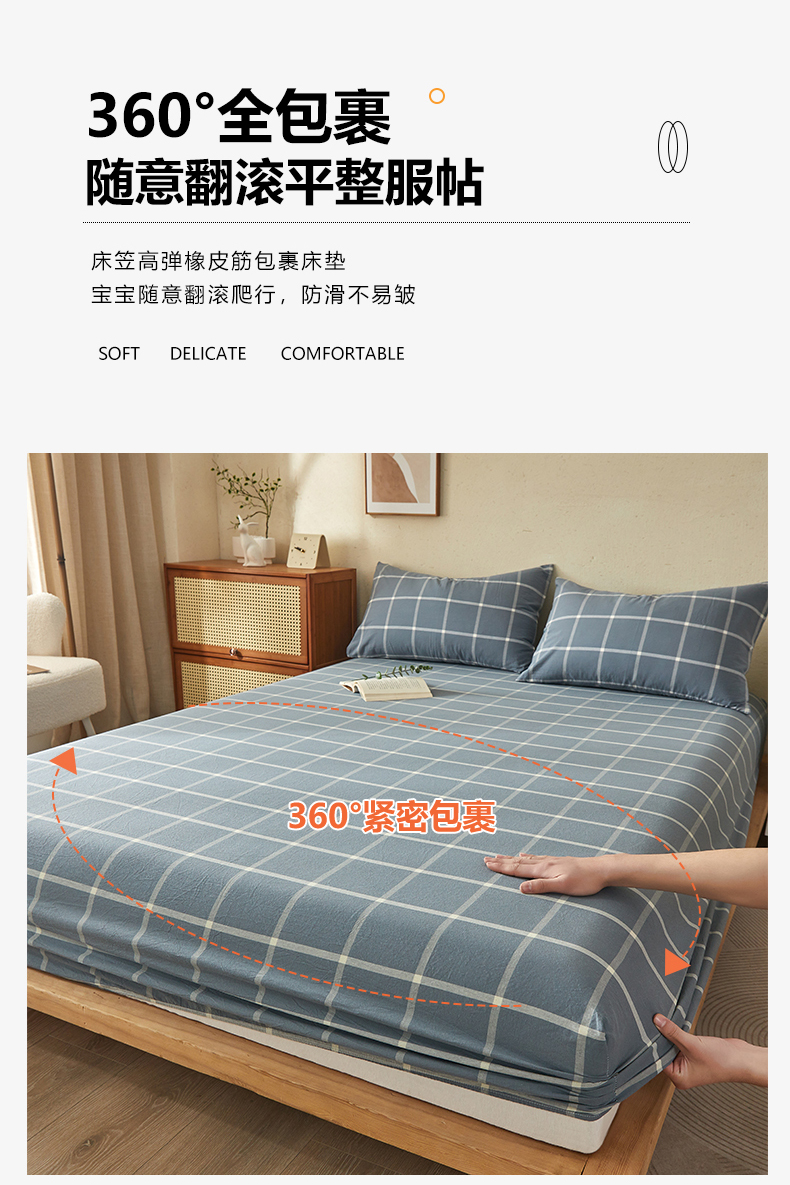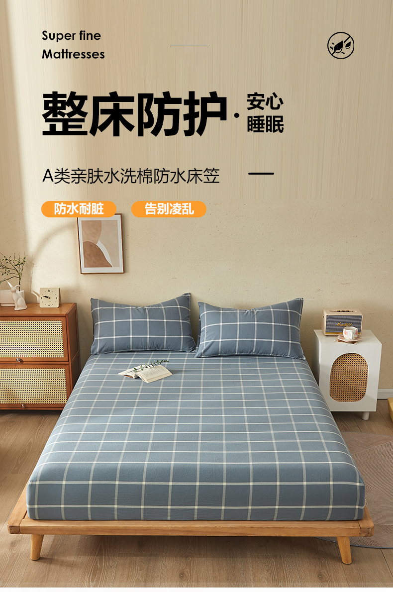 商品名称:暖阳 2025新款A类无印风防水床笠 单床笠 马卡龙大格