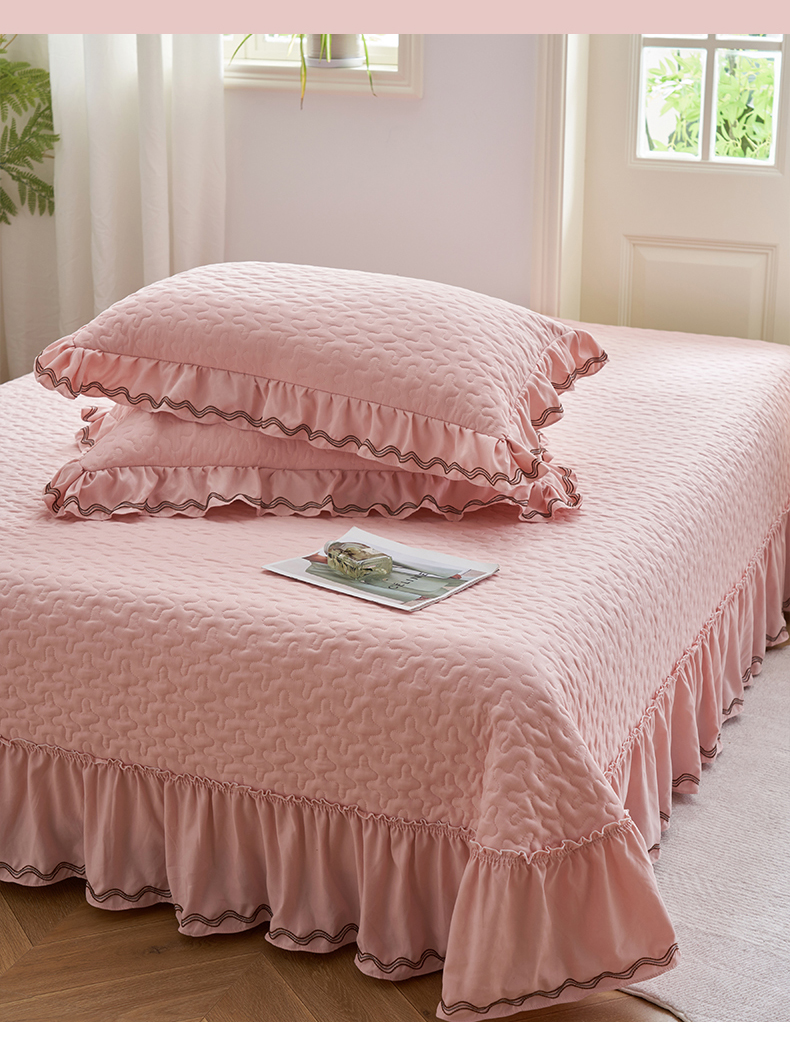 (总)恒爱 2022秋冬水晶绒翩翩花舞夹棉床裙四件套,大红色,豆沙红,橄榄绿,公主粉,桔色,咖啡色,孔雀绿,拉菲红,罗兰紫,玫红色,美人玉,米白色,米驼色,抹茶绿,浅灰色,紫色