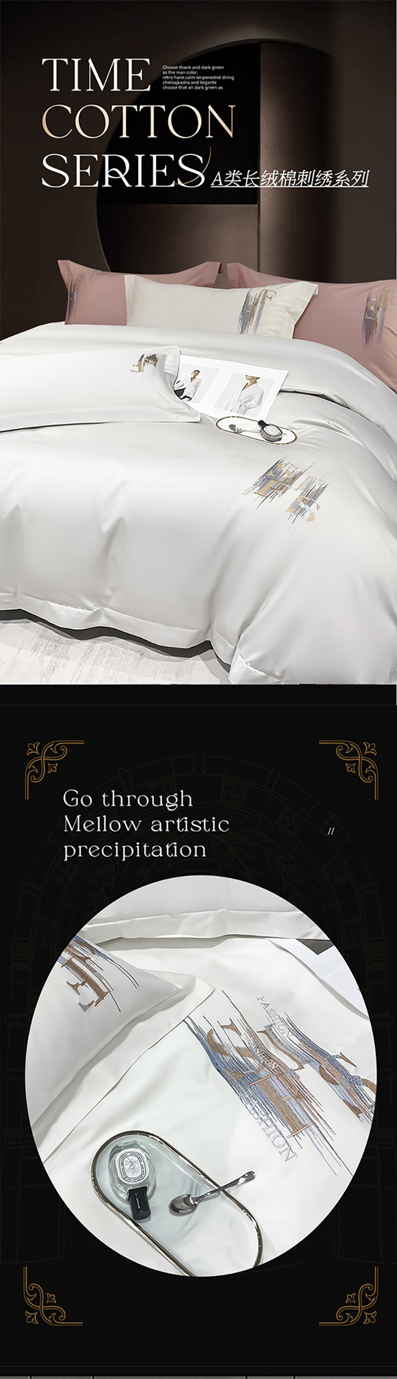(总)莱阁亿 2025新款高支高密长绒棉刺绣四件套--时光痕迹,时光痕迹-宾利蓝,时光痕迹-豆沙粉,时光痕迹-皓月白,时光痕迹-月光灰