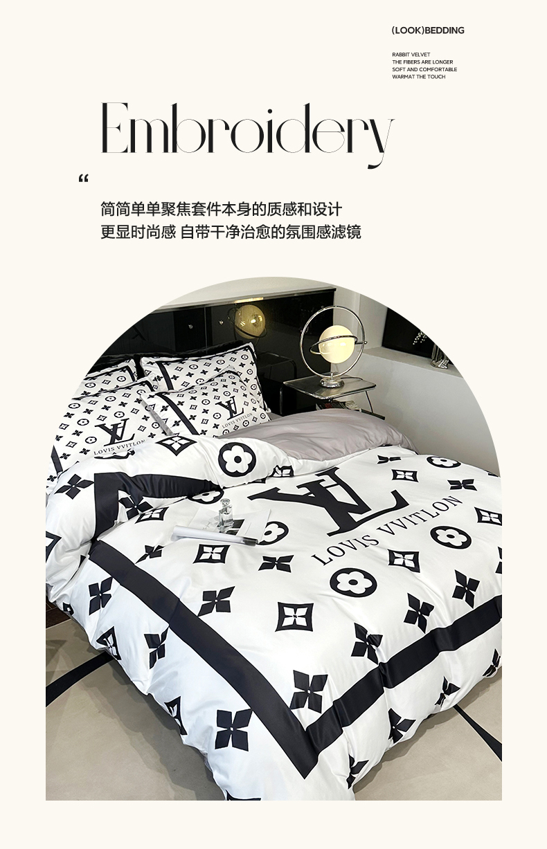 (总)摩卡(乐趣) 2024新款亲肤全棉网红轻奢四件套,H马,大H,粉红兔,黑白迪,黑白V,黑双C,咖古,咖色熊,蓝咖熊,毛绒熊,趴趴熊,七彩迪,小楂花,萌兔