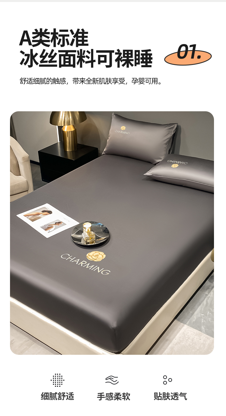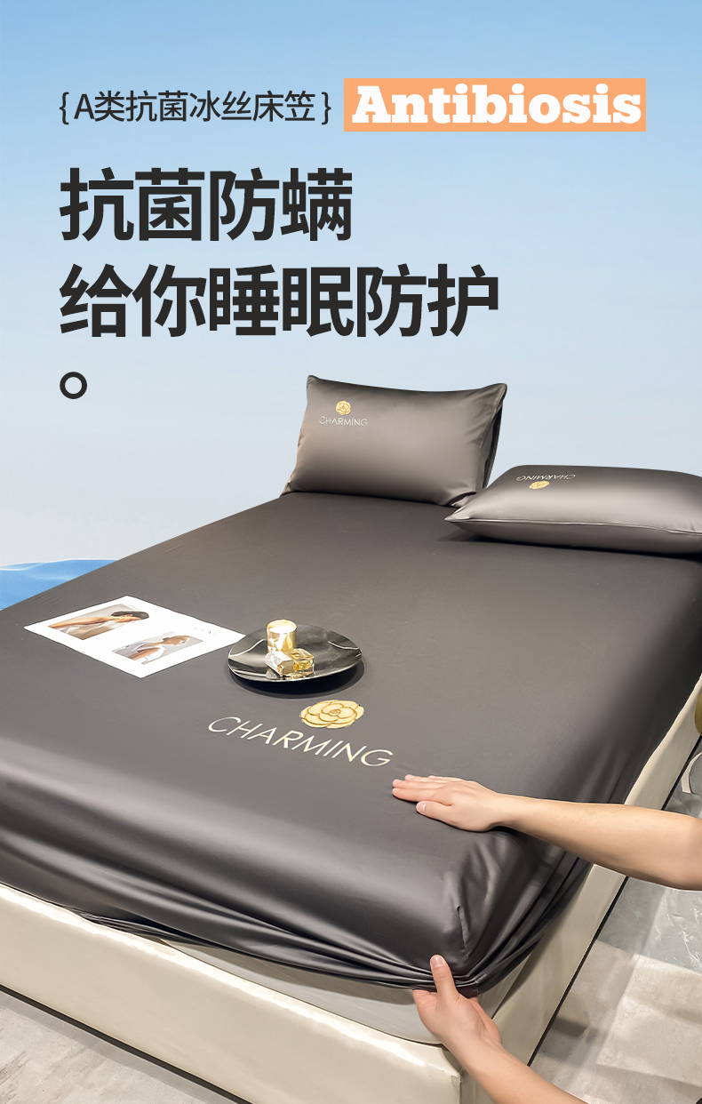 • 91家纺网 家纺一手货源 找家纺 古吉梦 2024新款水洗真丝冰丝床笠 冰丝-贝拉-高级灰