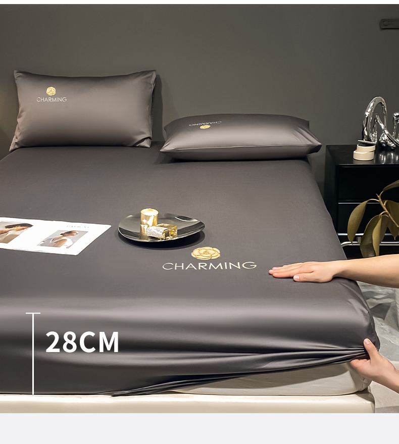 古吉梦 2024新款水洗真丝冰丝床笠 冰丝-贝拉-高级灰
