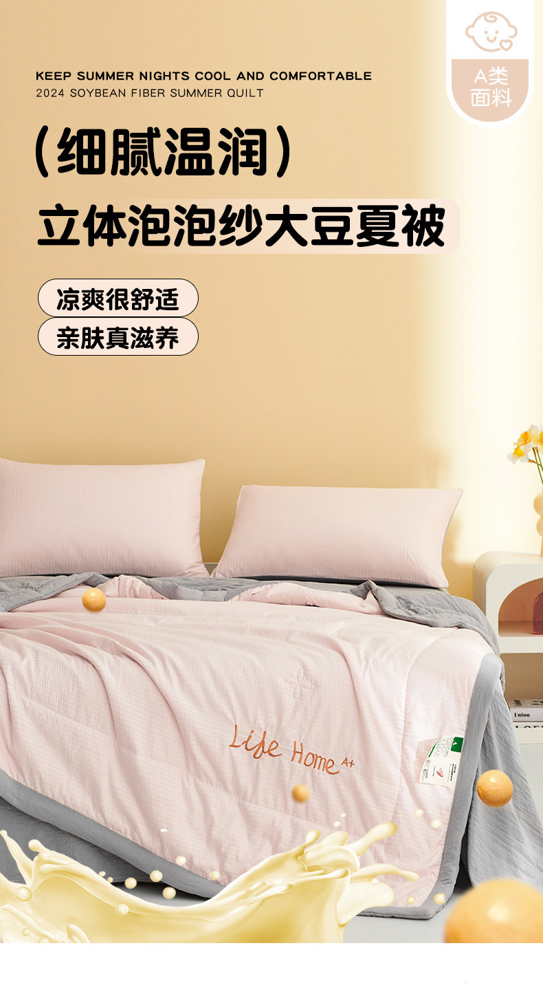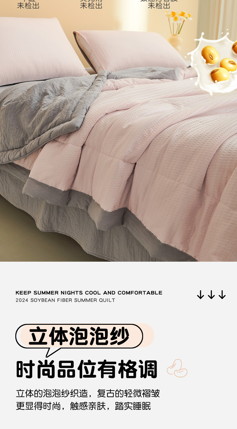 (总)恒畅 2024新款A类泡泡纱大豆夏被,天空蓝,太空灰粉,太空灰蓝,少女粉,清新蓝灰,牛油果绿,豆蔻粉,香芋紫