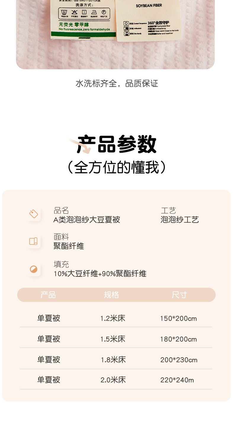 商品名称:恒畅 2024新款A类泡泡纱大豆夏被 少女粉