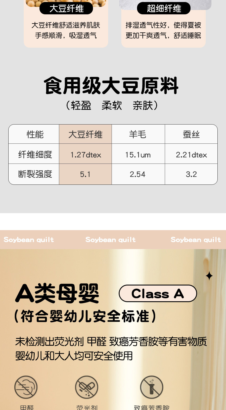 填充纤维种类: 大豆蛋白改性聚酯纤维